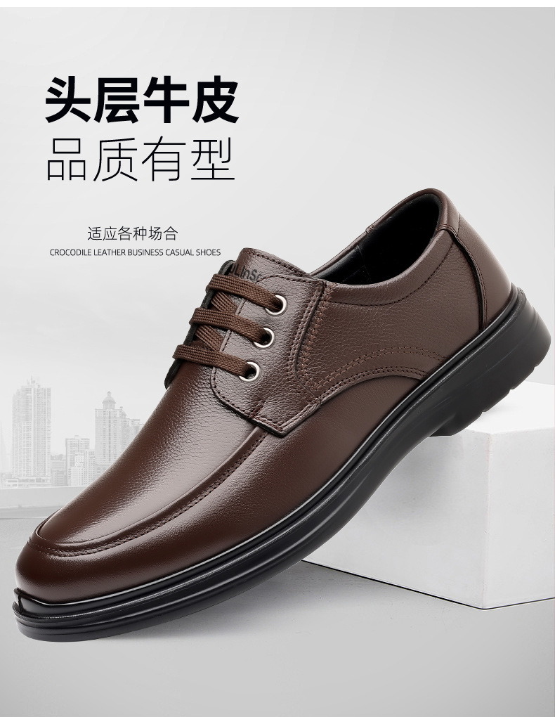 木林森皮鞋男款爸爸冬季真皮商务休闲鞋2025新款英伦头层牛皮男鞋