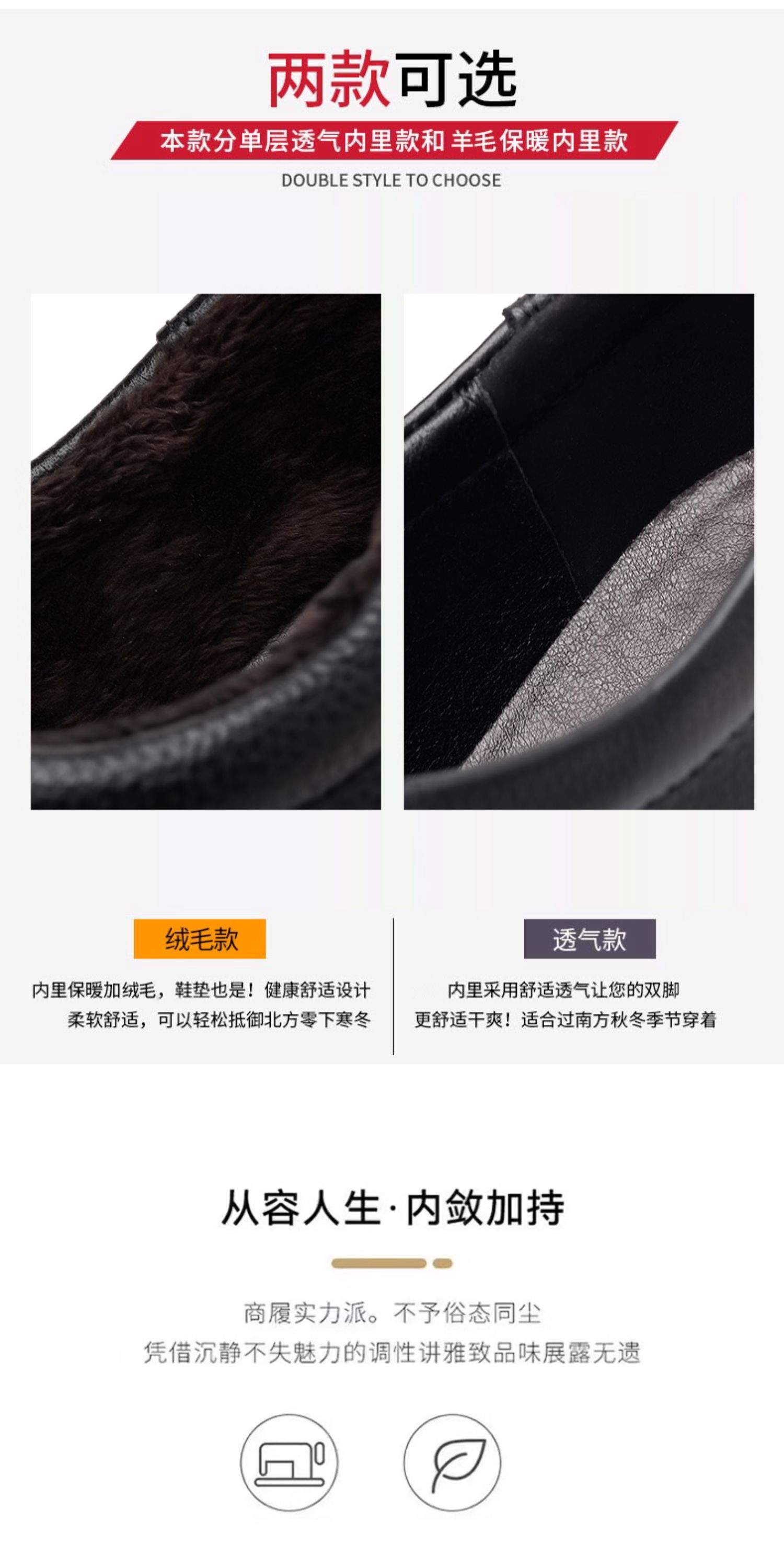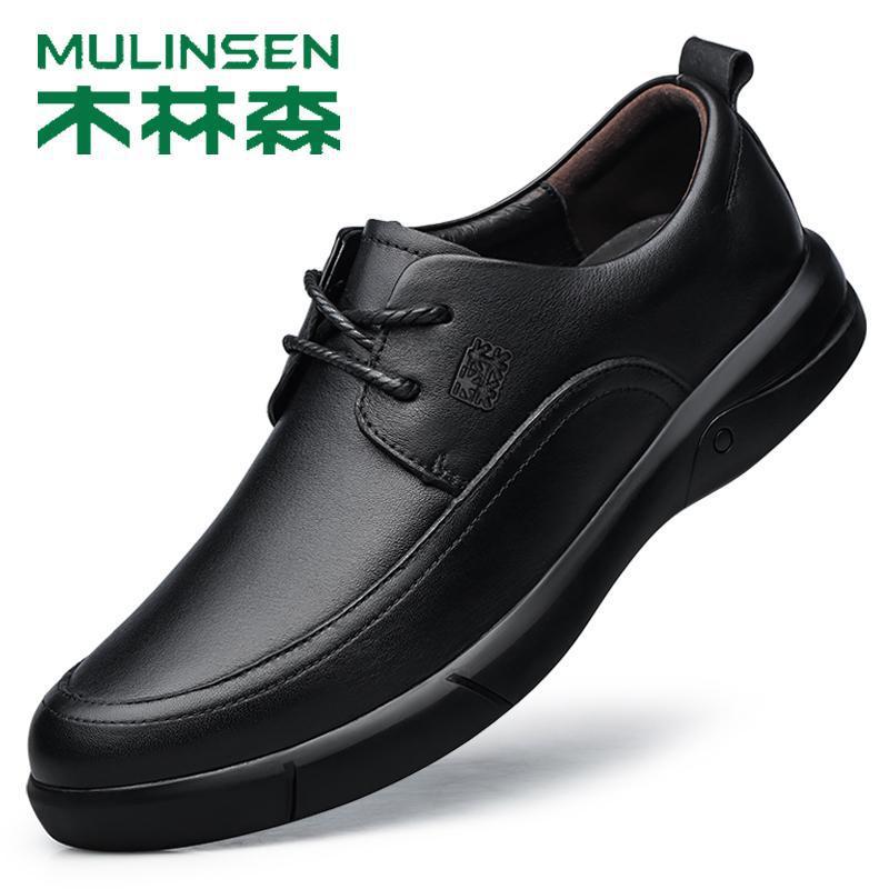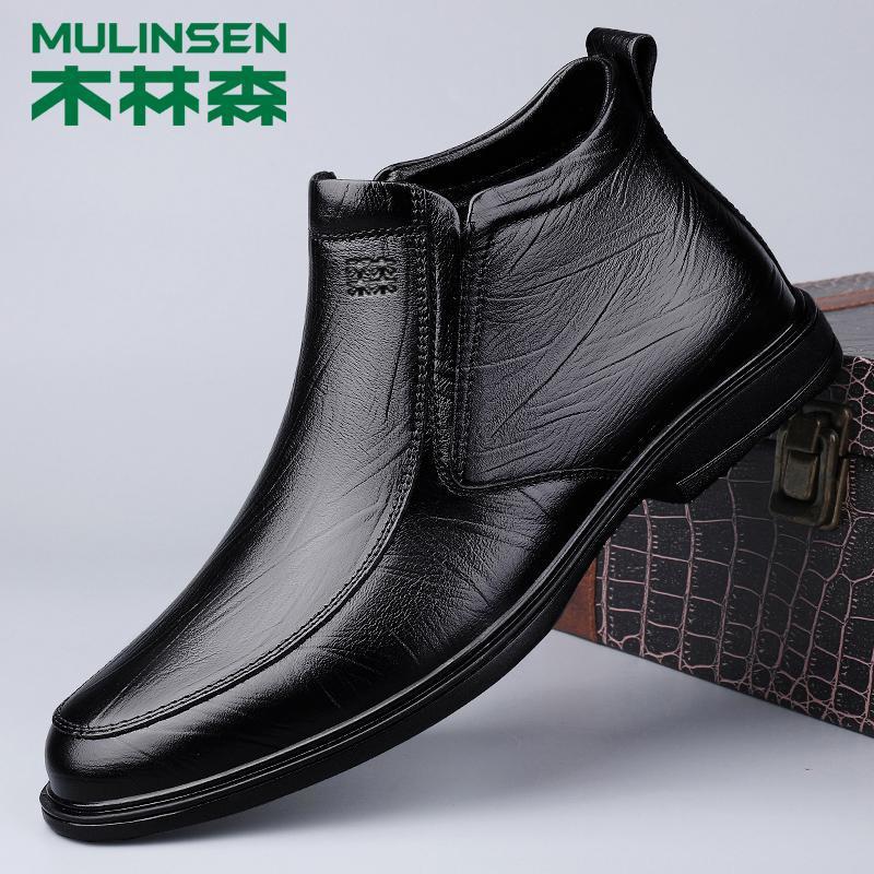 木林森皮鞋男冬季真皮软底商务休闲鞋头层牛皮厚底防滑中年爸爸鞋