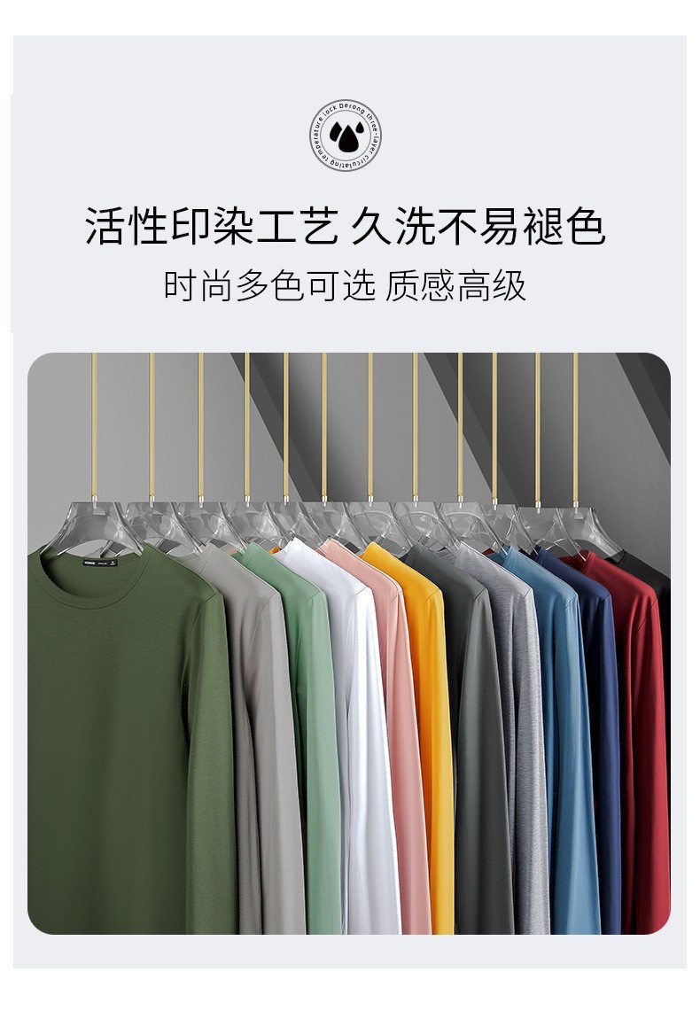 长袖T恤男款春秋季2025新款纯色休闲上衣圆领透气内穿保暖打底衫