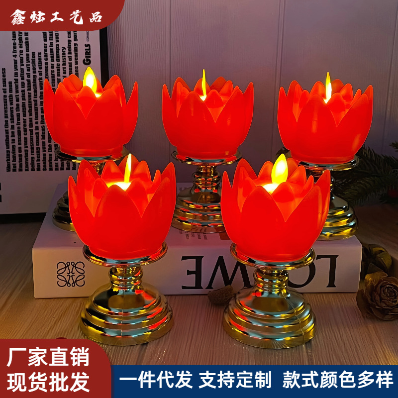 Led金台座シミュレーション蓮のろうそく灯寺院仏前進功灯仏灯家庭用長灯安全無煙