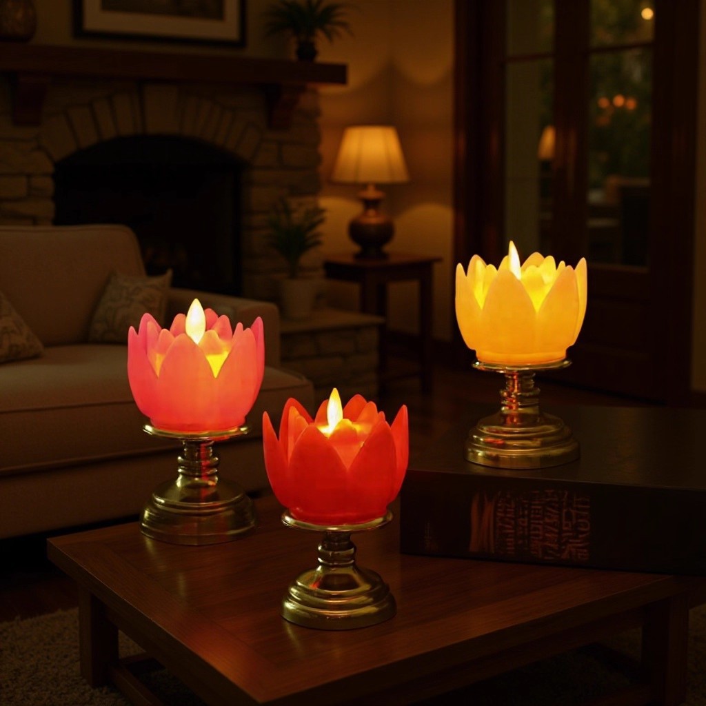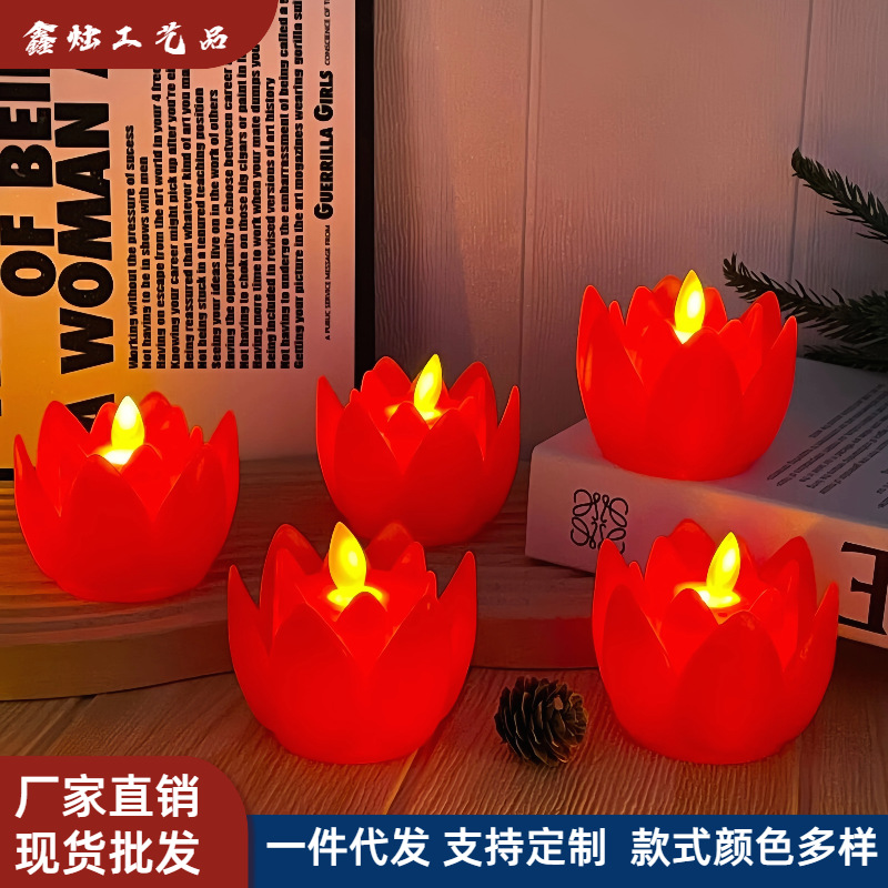 模擬LED電子キャンドルライト、炎が揺れる仏前、無煙のパフォーマンスイベント、祭りと祝福の蓮のランプ