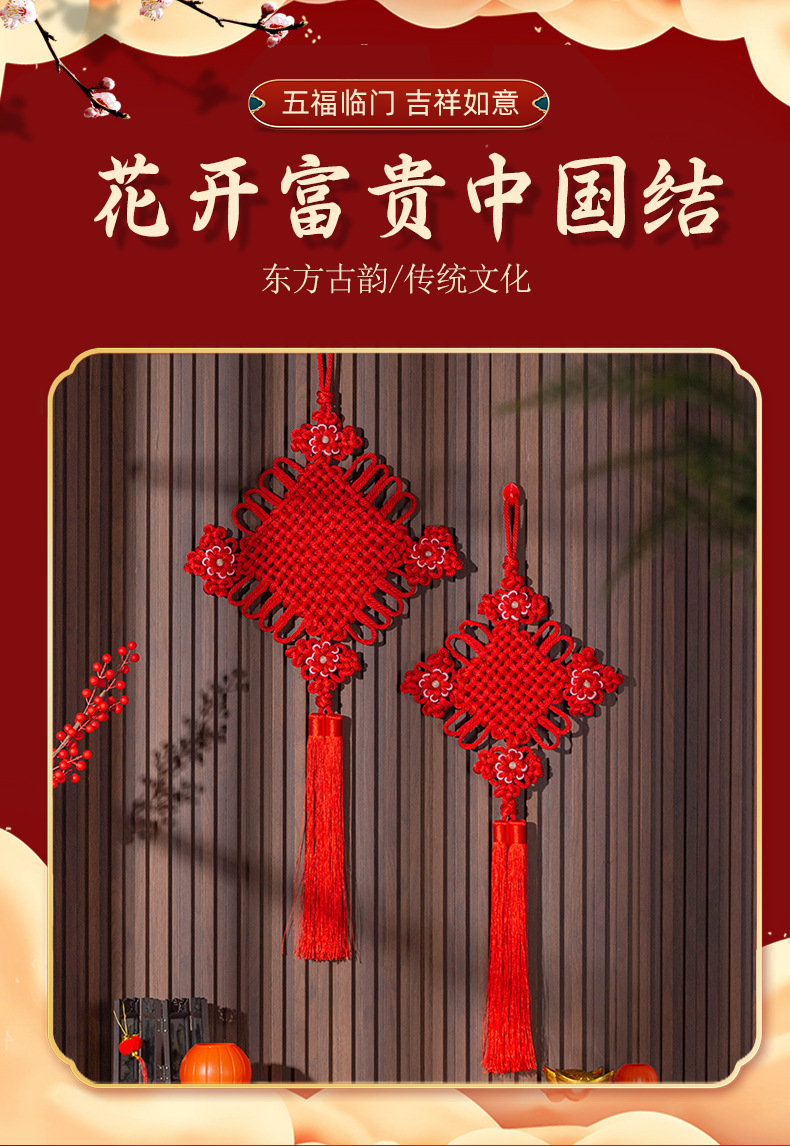 新款中国结对联挂件客厅玄关入户门喜庆装饰品乔迁新居大红平安结