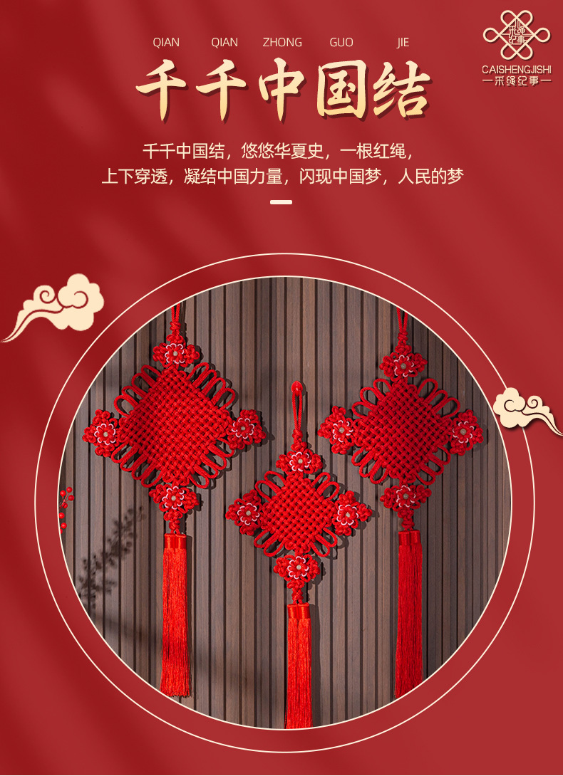 辰年純粋な中国結び、大きな織りベルベット結び、コミュニティエントランスホール、玄関ホール、小さな祝福の文字入り手織り結び