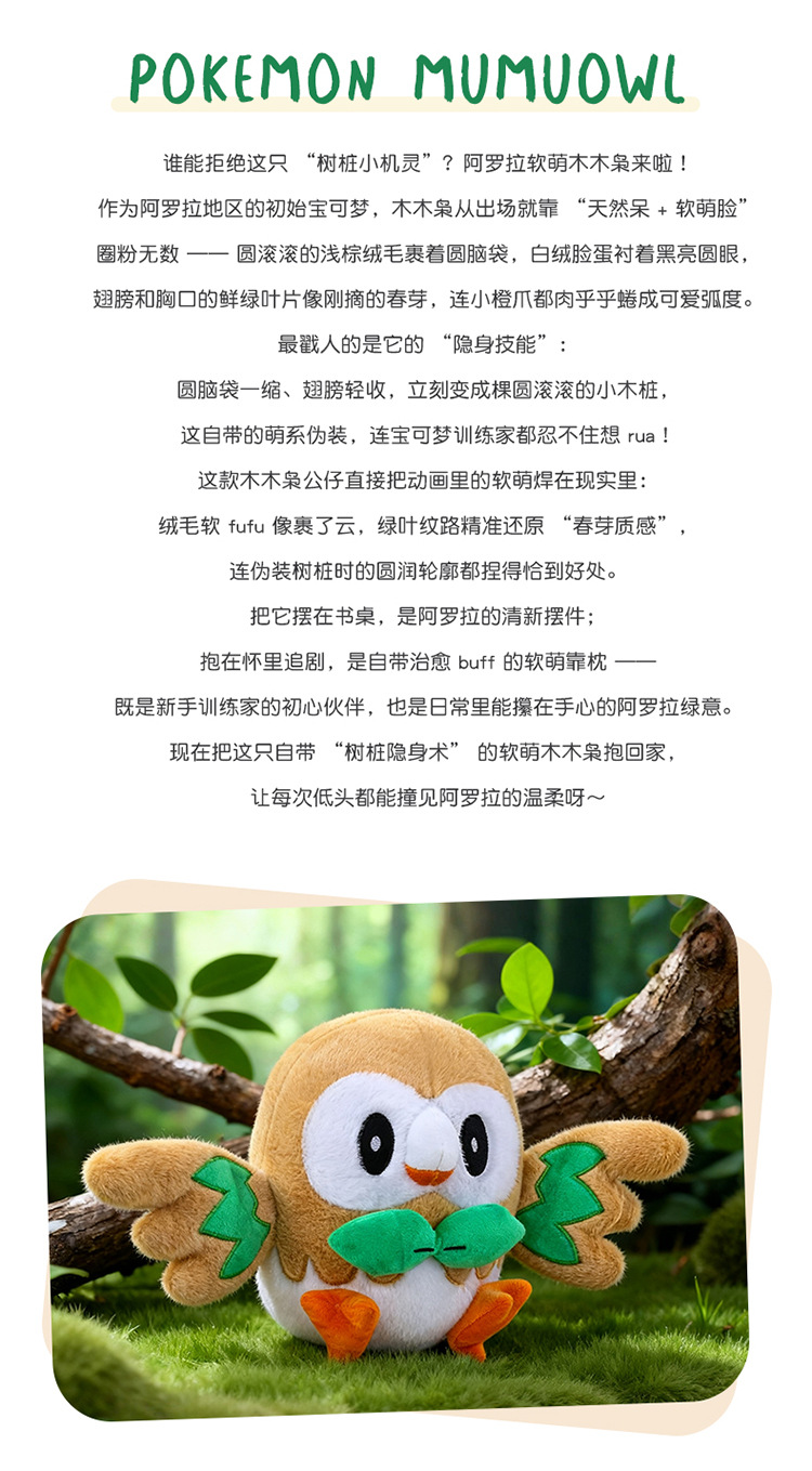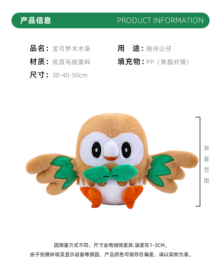 可爱宝可梦系列木木枭玩偶批发毛绒玩具抓机公仔布娃娃兑换跨境