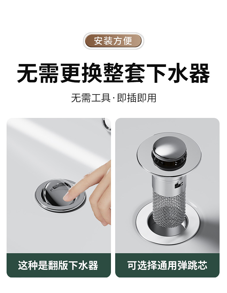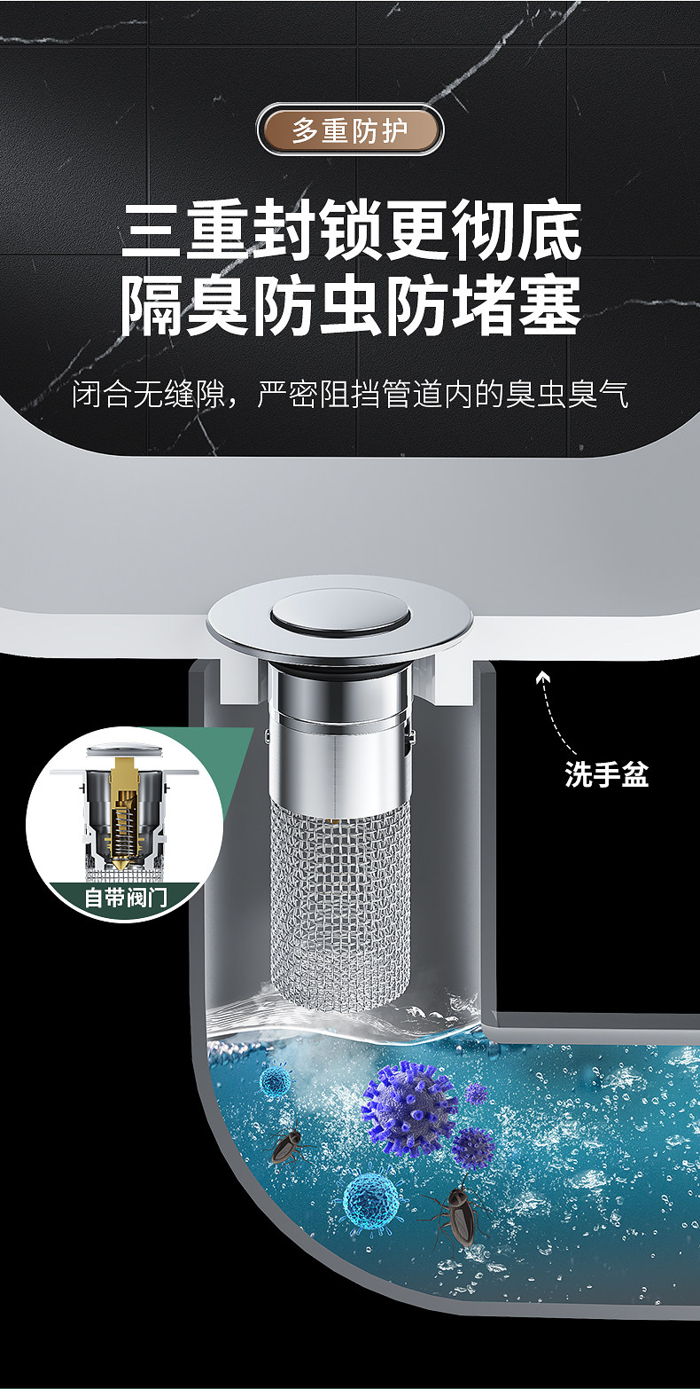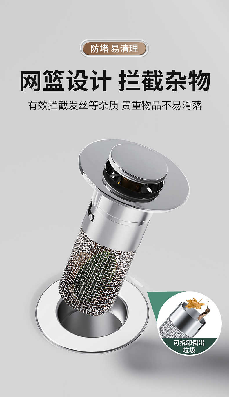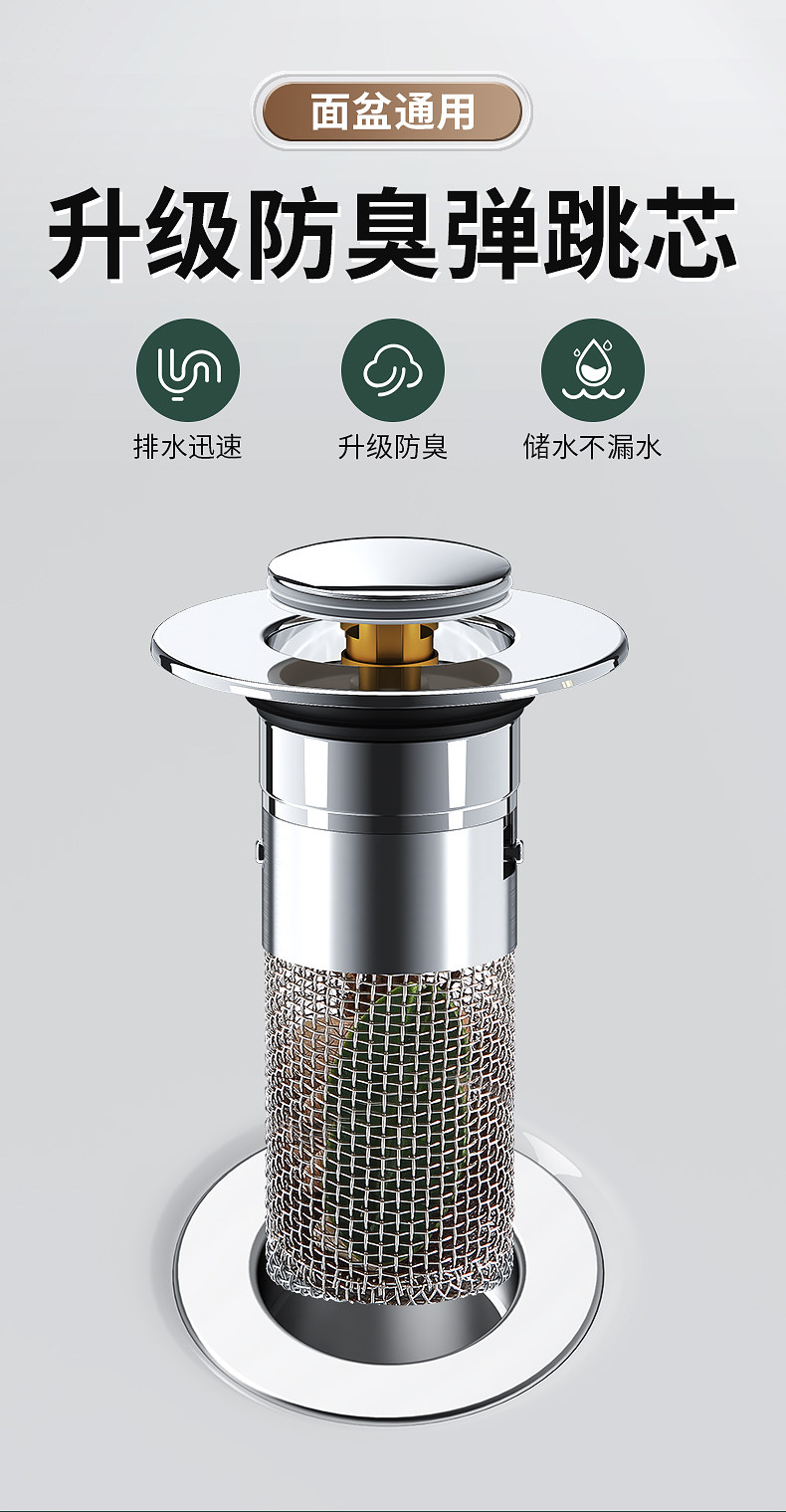 严选洗手盆漏水塞过滤弹跳芯脸盆水池水器防臭网面盆通用按压密封