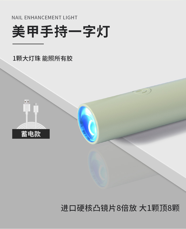 跨境新款手持美甲一字灯小型便携美甲灯光疗机蓄电款迷你甲片适用