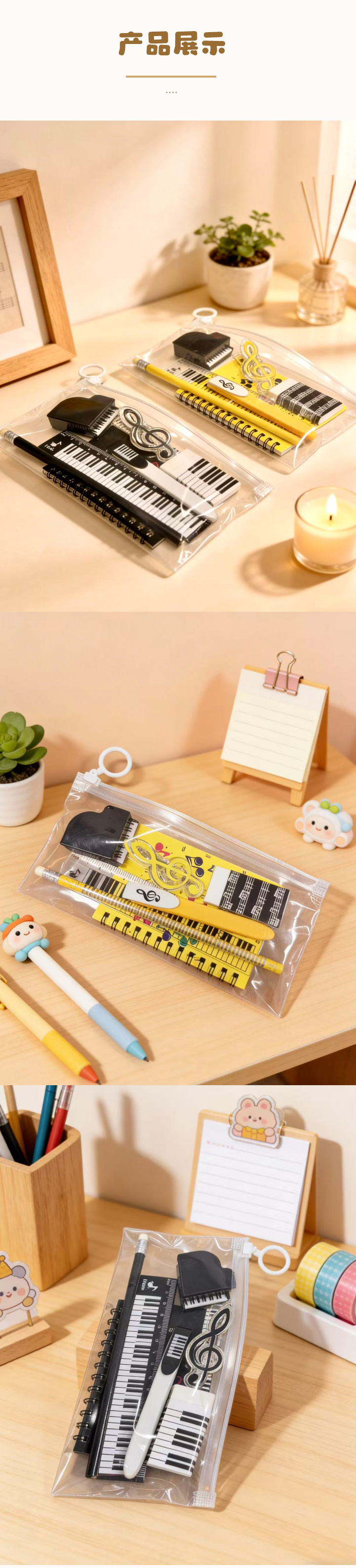 外贸专供音乐文具套装钢琴音符橡皮擦线圈本铅笔礼袋套装组合礼品