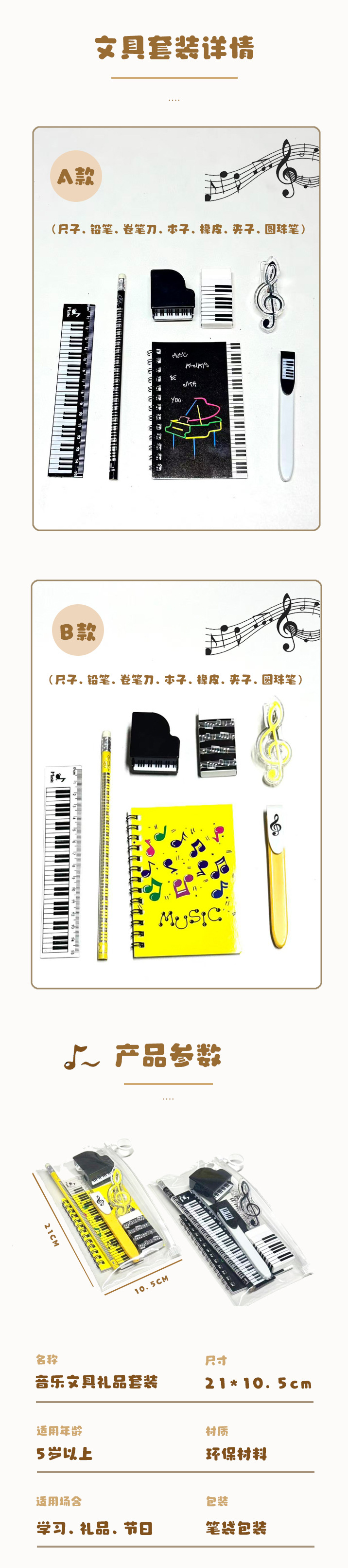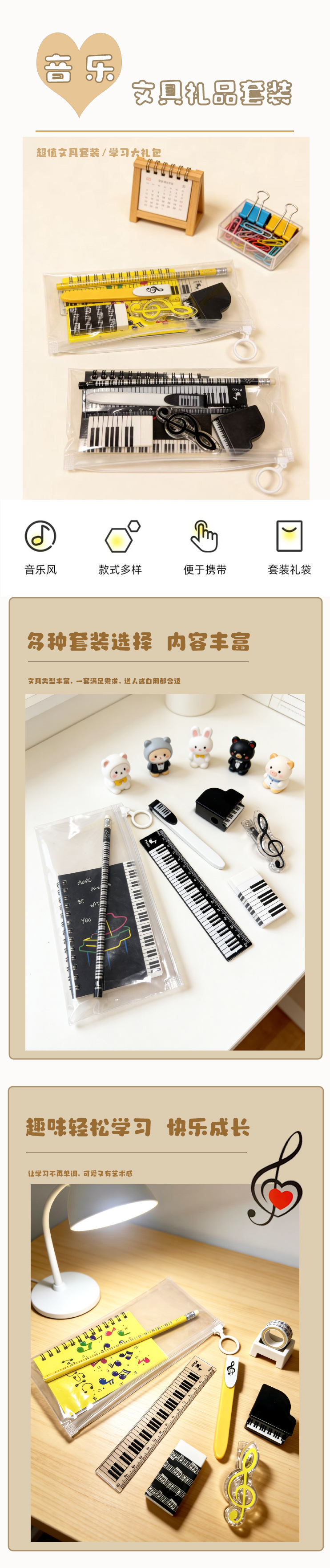 节日礼品卡通文具套音乐系列儿童奖品开学伴手礼生日礼物学习用品