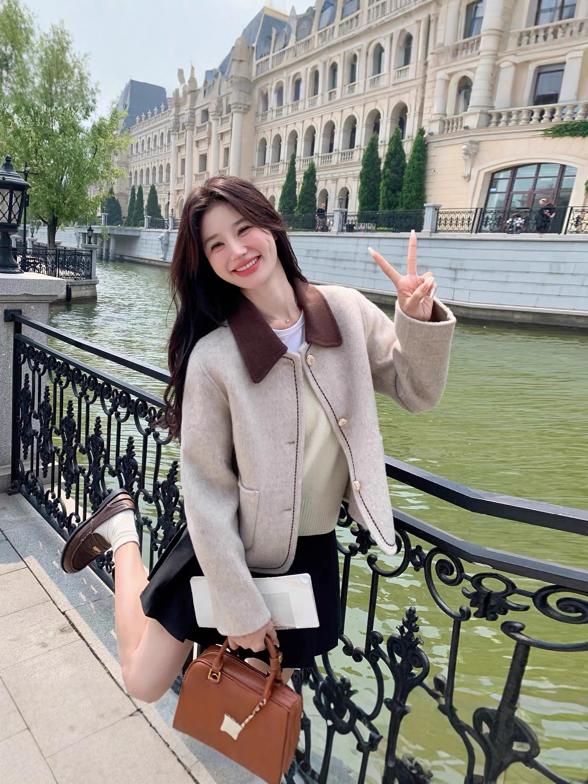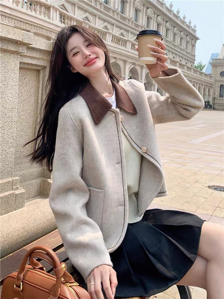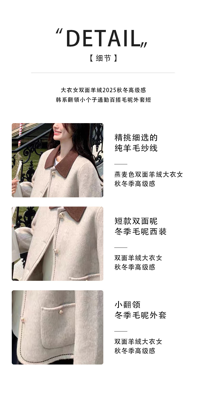 羊毛大衣女短款燕麦色翻领小个子显瘦休闲百搭冬季双面毛呢外套风
