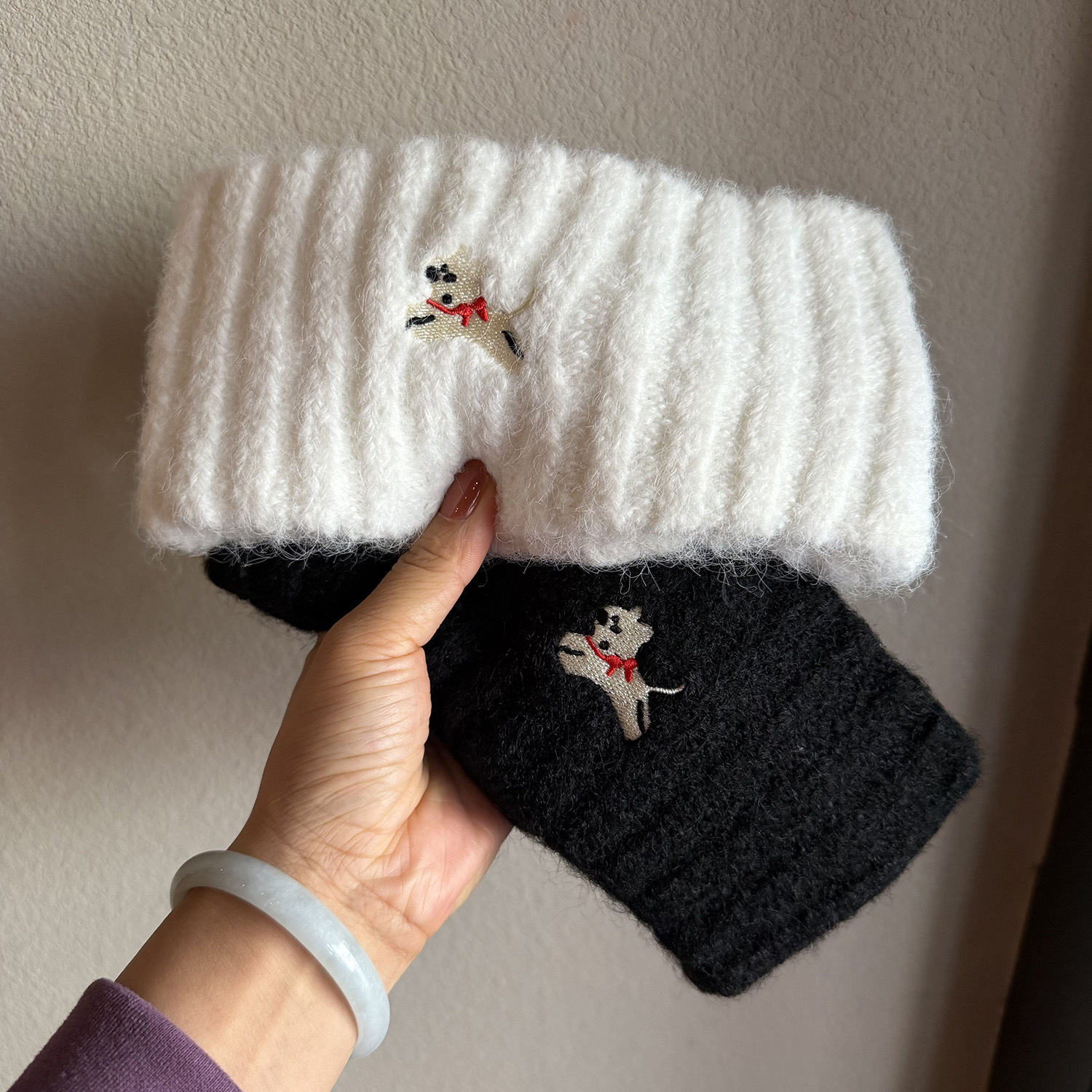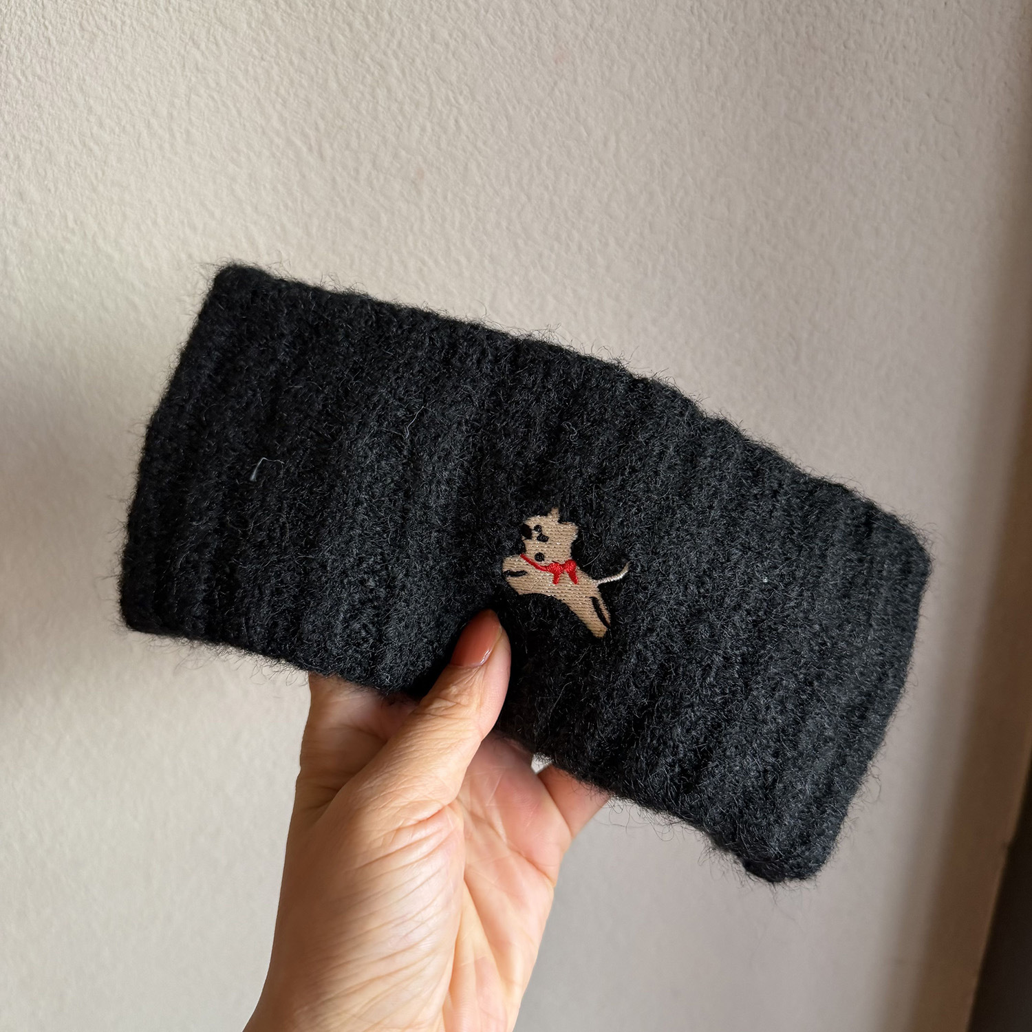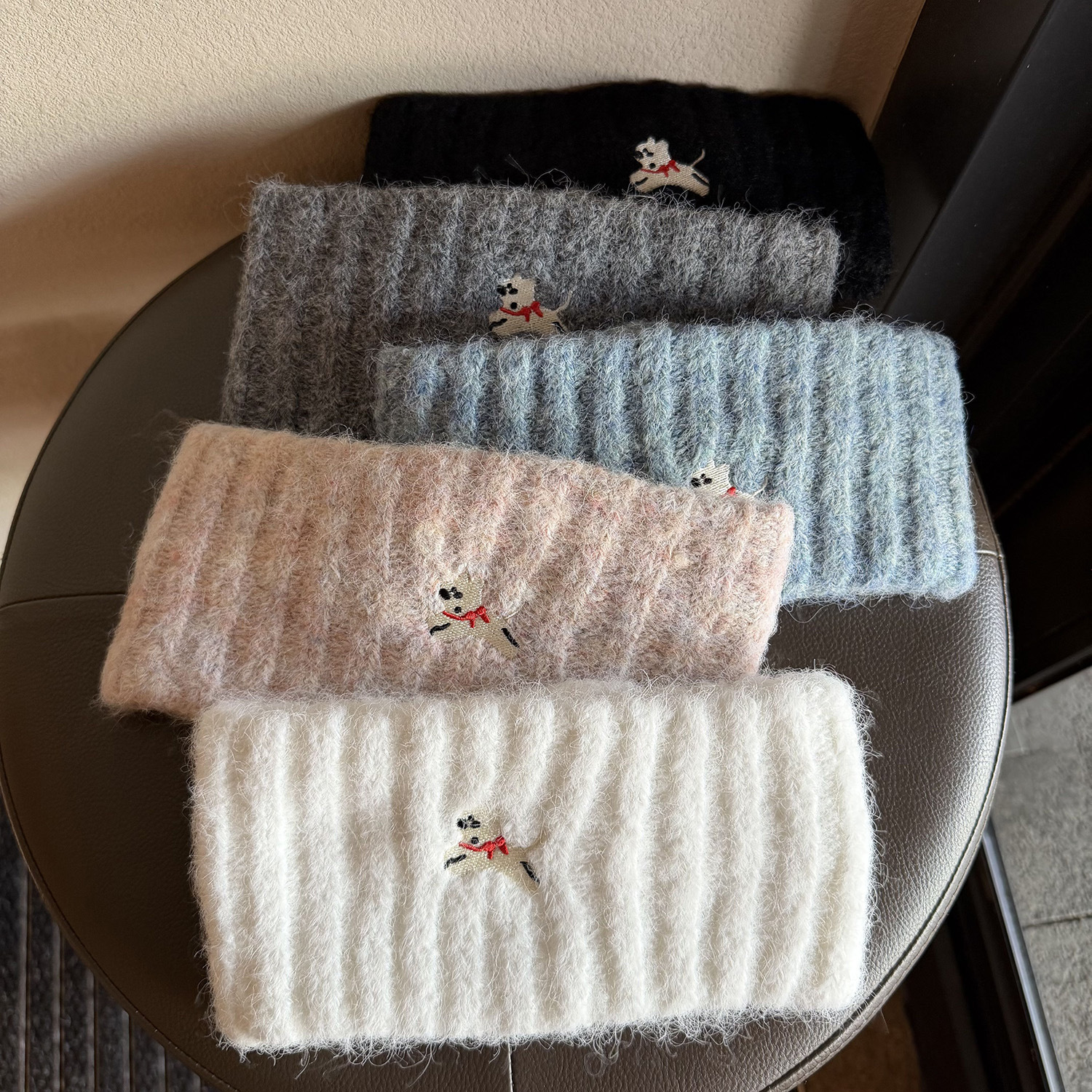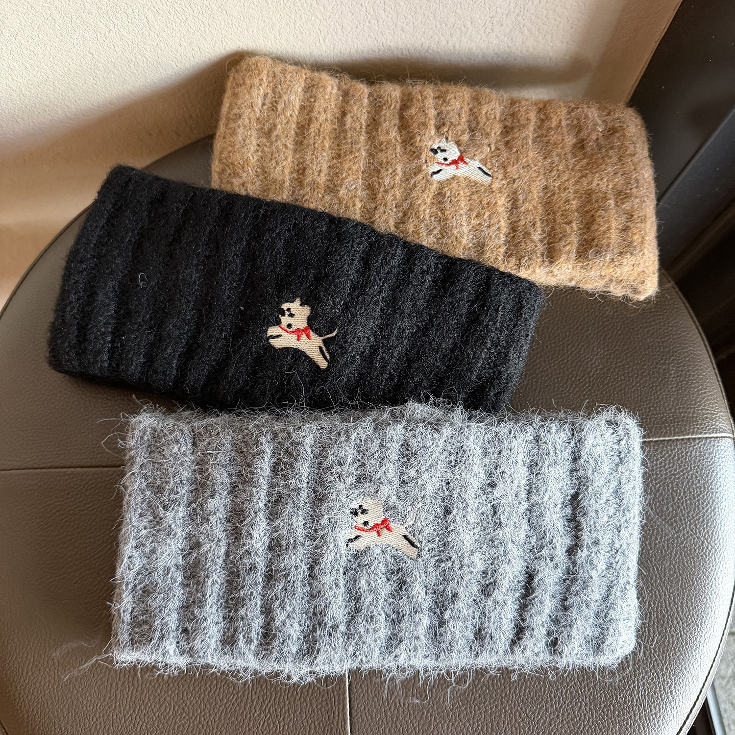 韩国刺绣小狗宽边针织发带女秋冬加厚保暖护耳时尚百搭羊毛头带潮