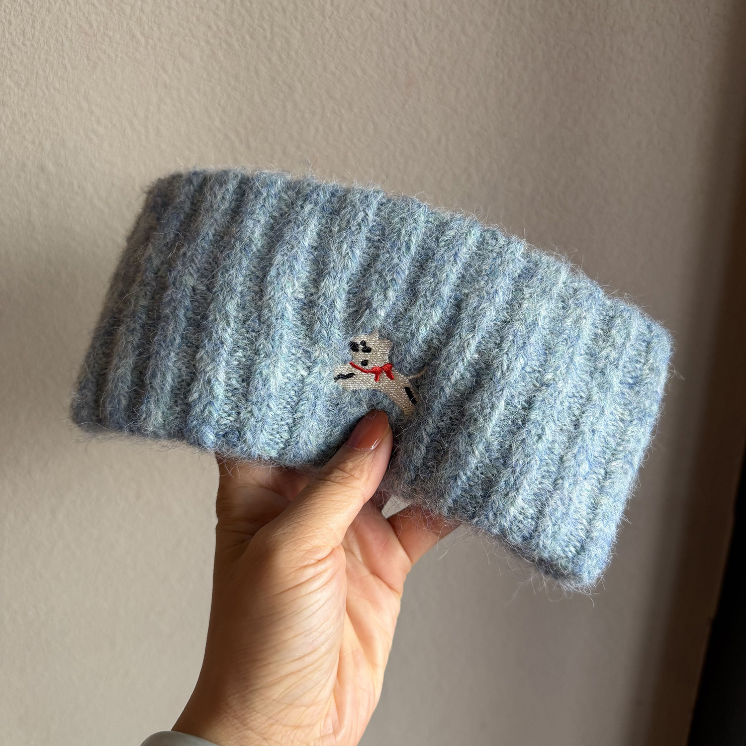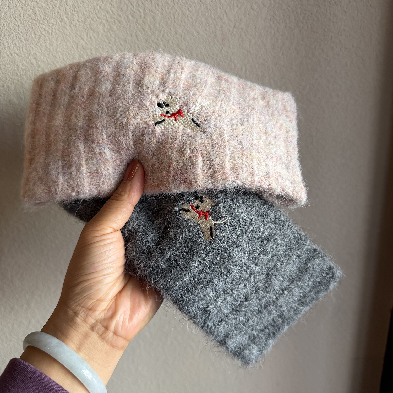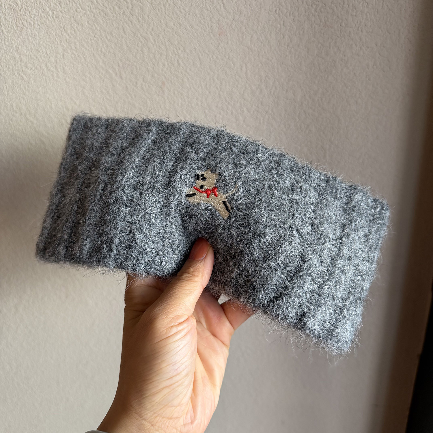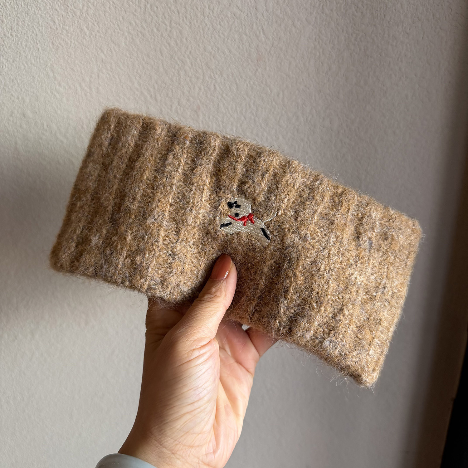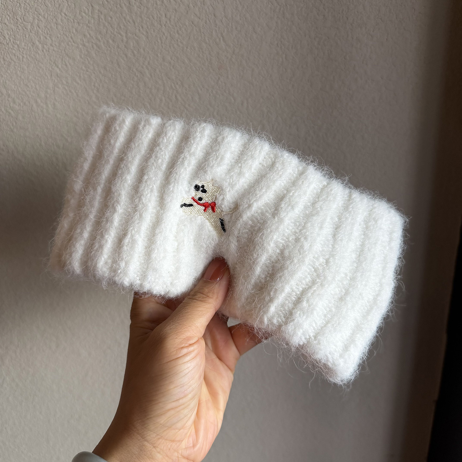 韩国刺绣小狗宽边针织发带女秋冬加厚保暖护耳时尚百搭羊毛头带潮