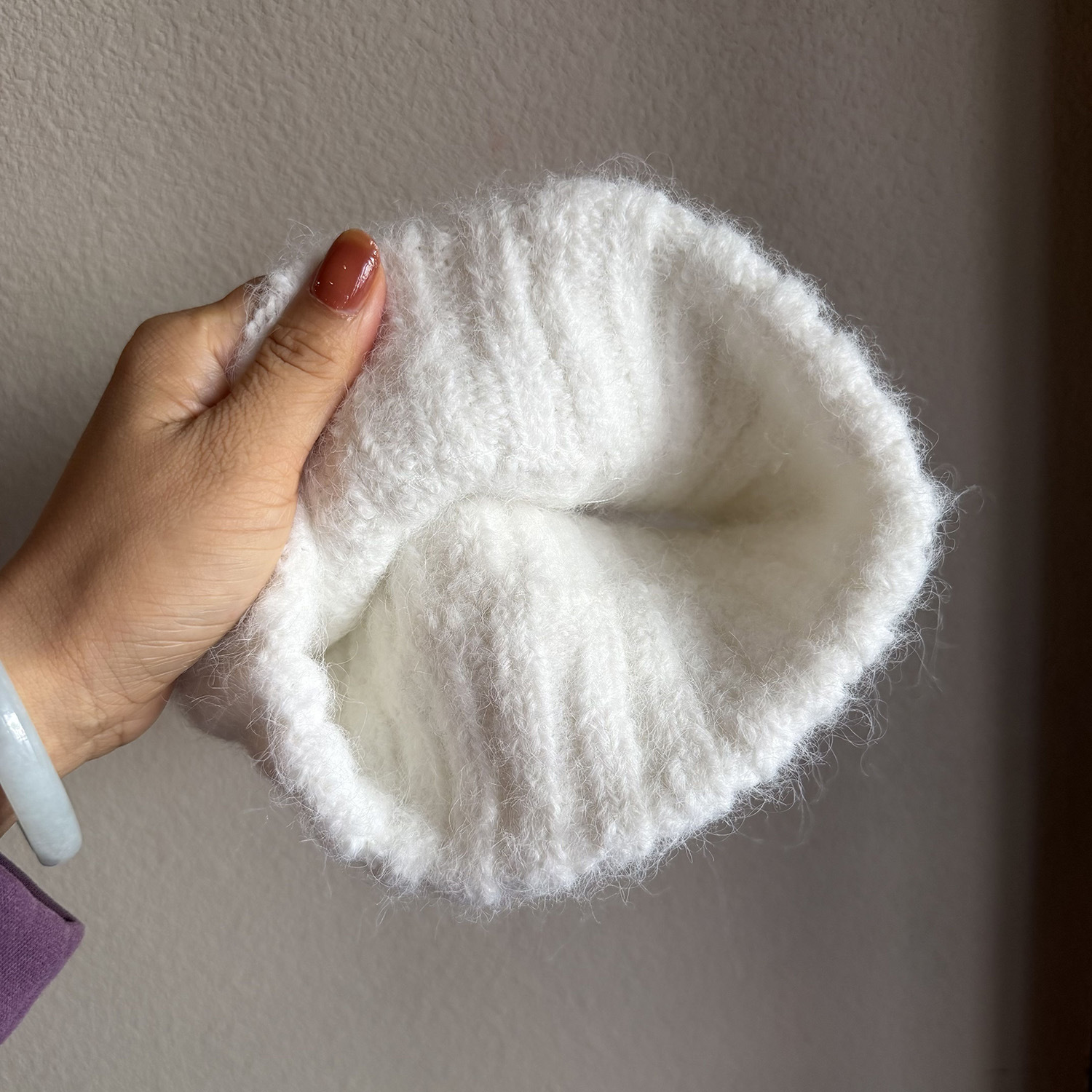 秋冬の純色のレトロなファッションは厚くて暖かい毛糸の冷たい帽子が湿っています。