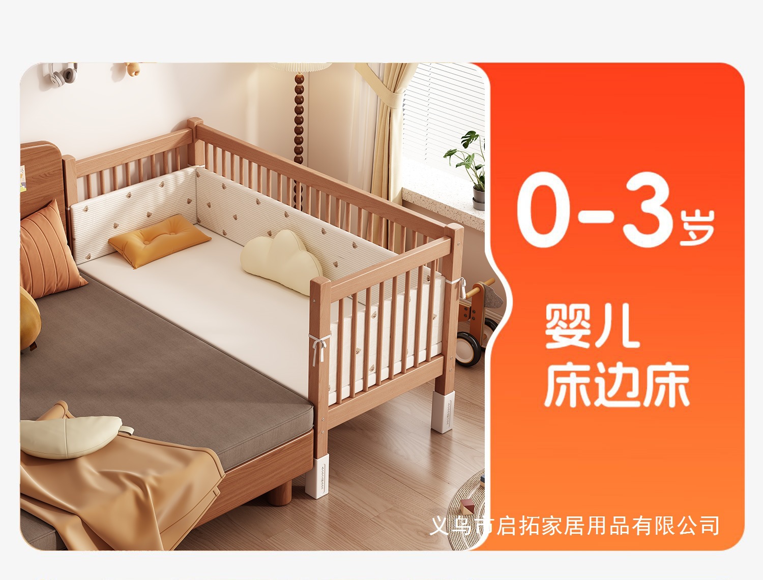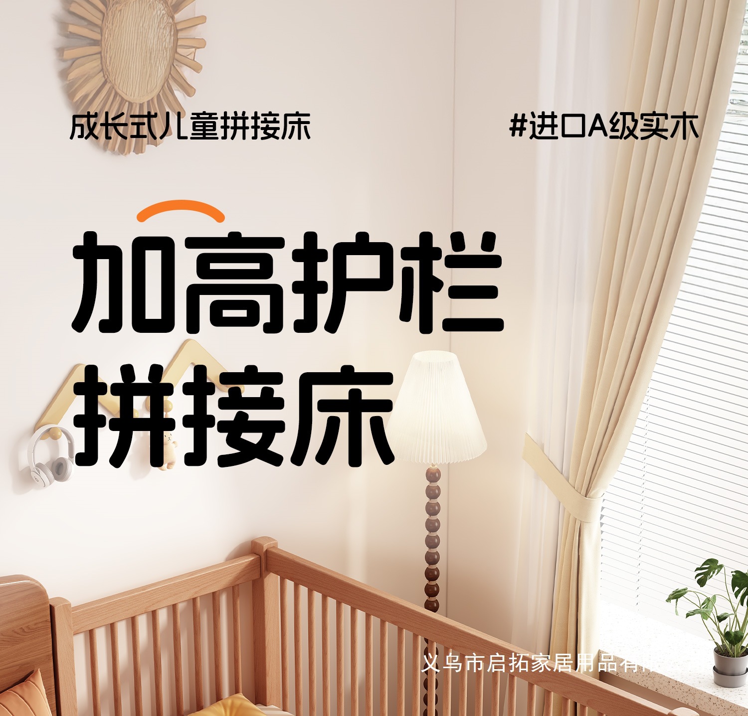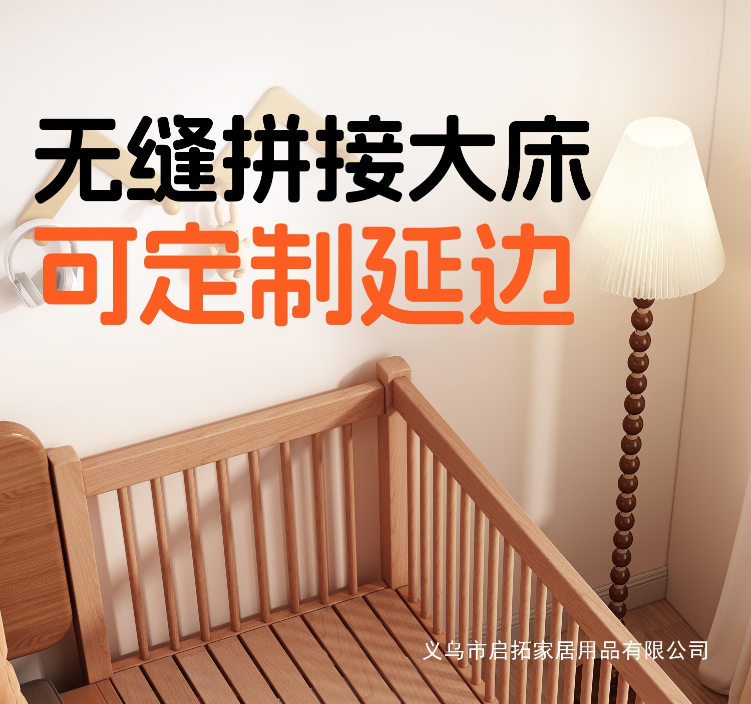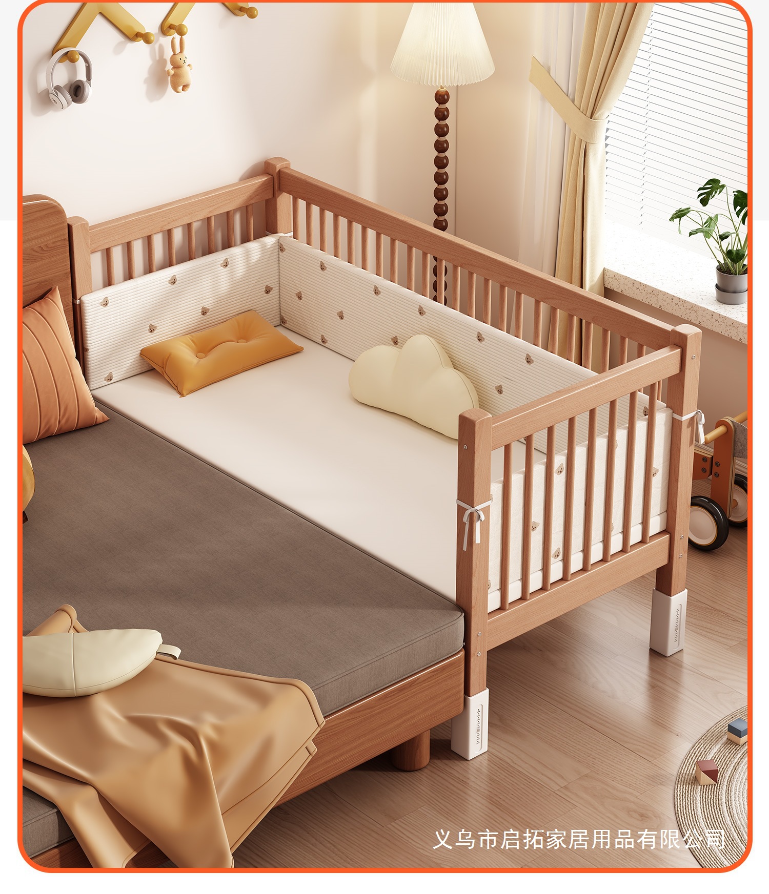 榉木拼接床婴儿床实木加宽宝宝床小床拼接大床带护栏床边床儿童床