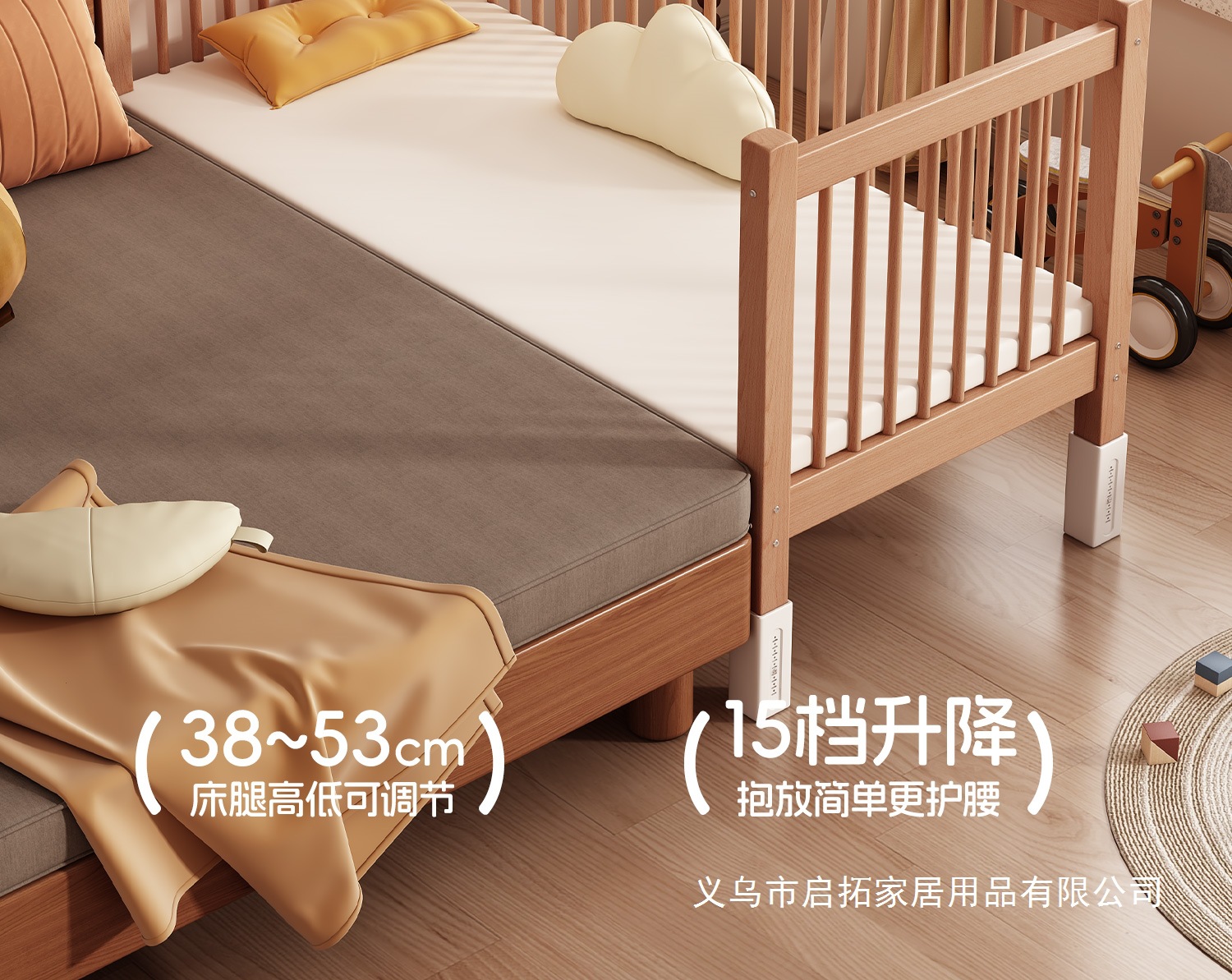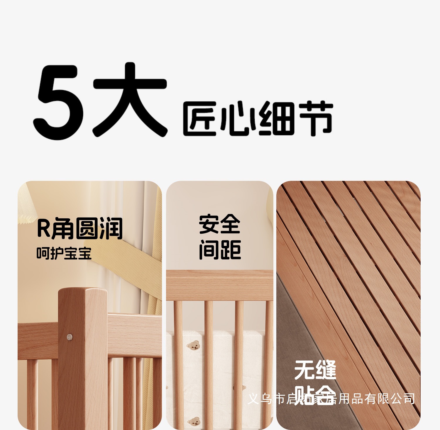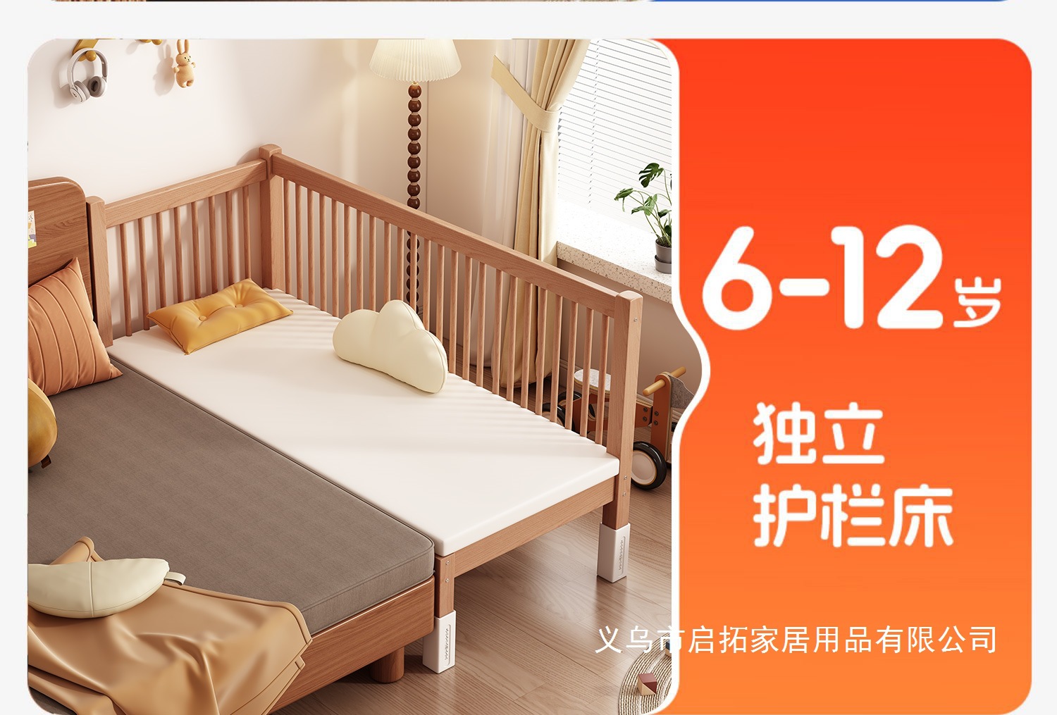 榉木拼接床婴儿床实木加宽宝宝床小床拼接大床带护栏床边床儿童床