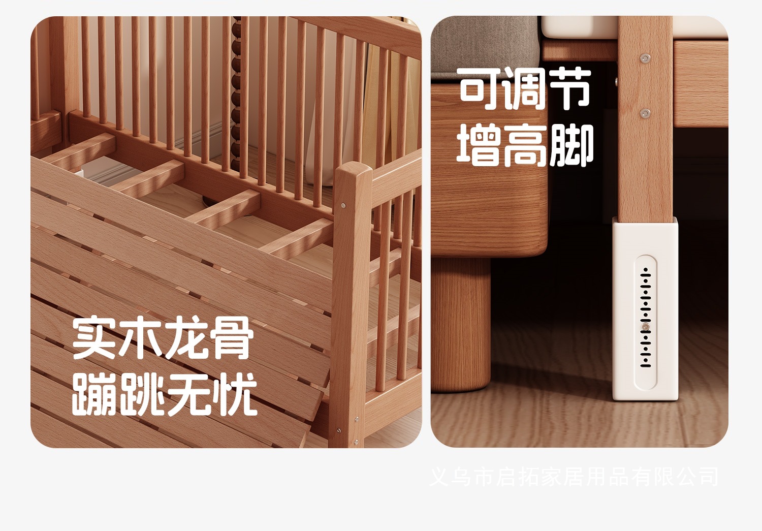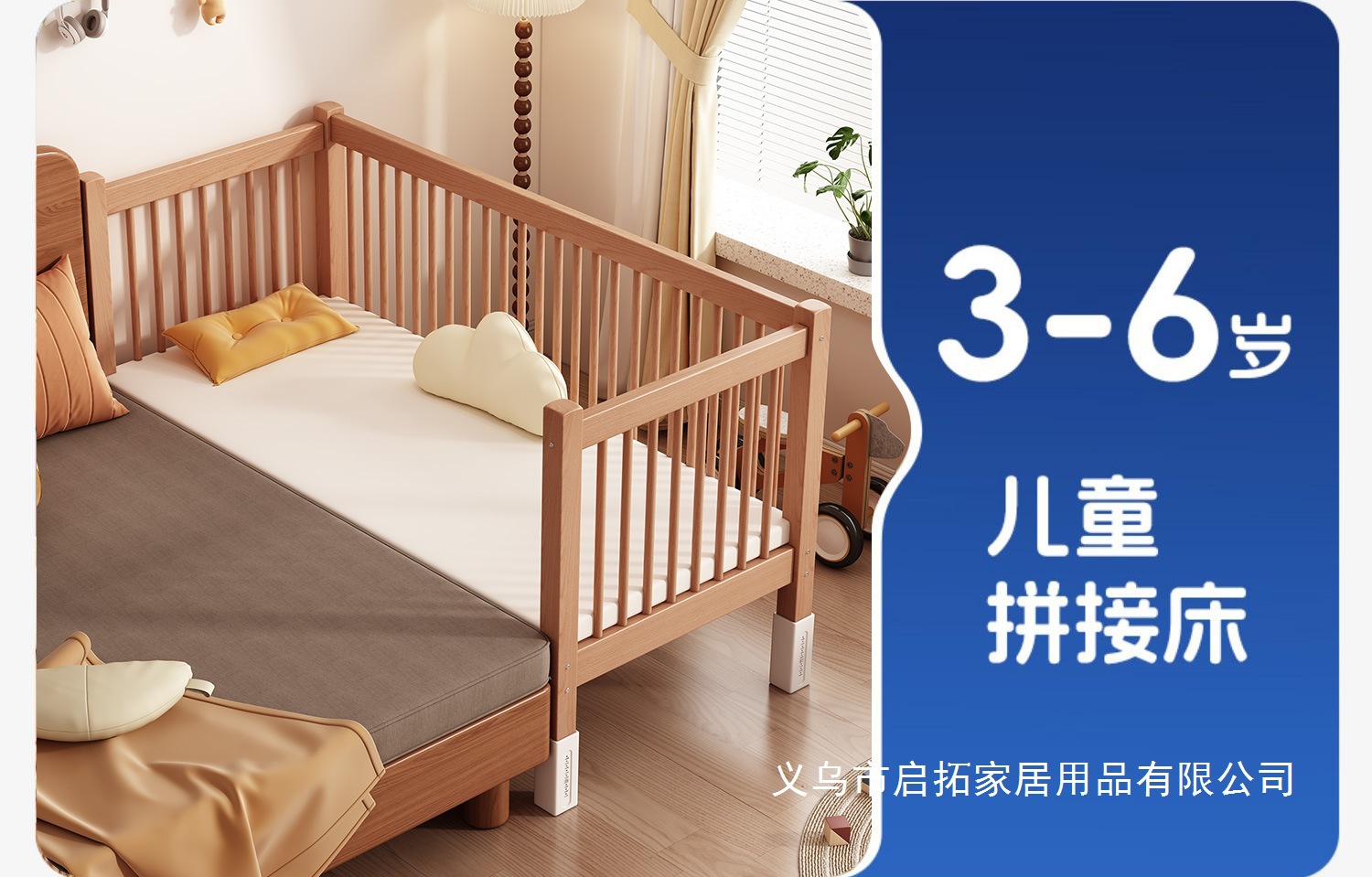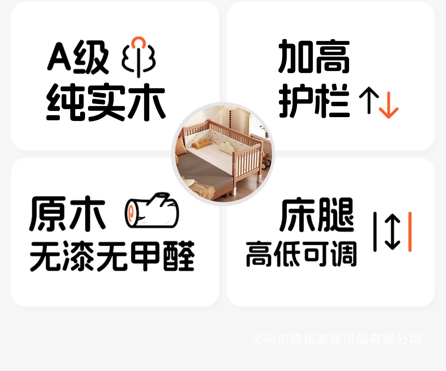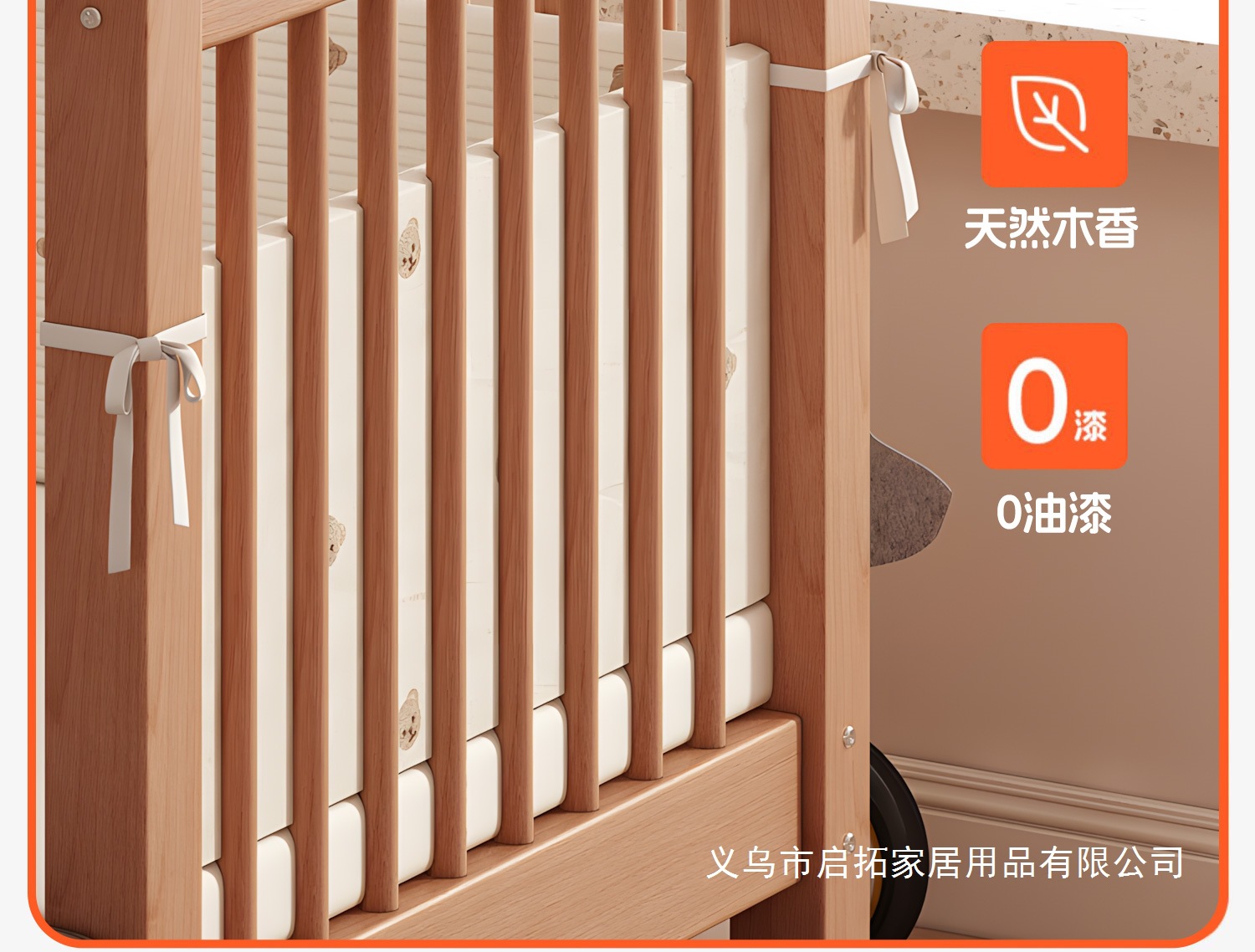榉木拼接床婴儿床实木加宽宝宝床小床拼接大床带护栏床边床儿童床