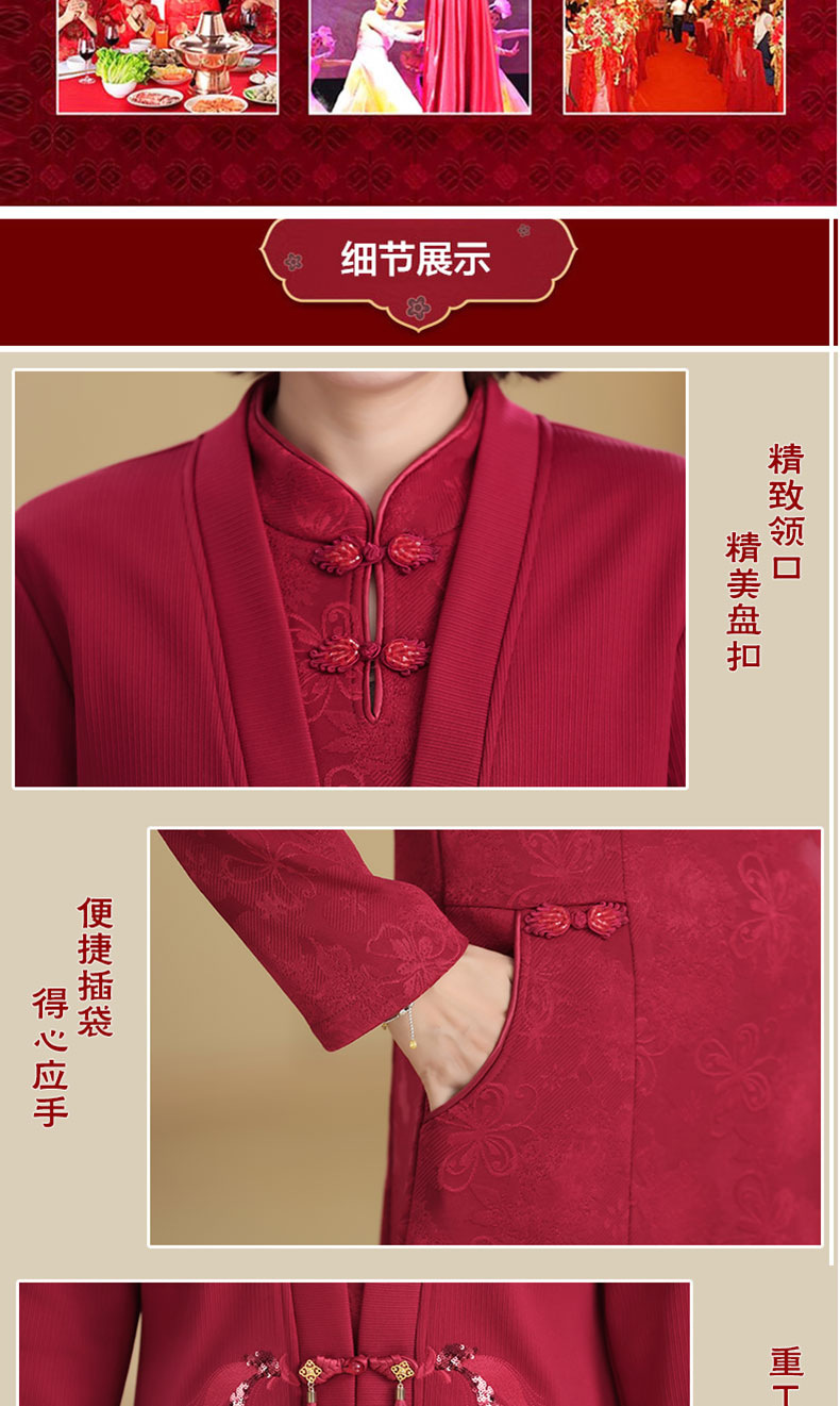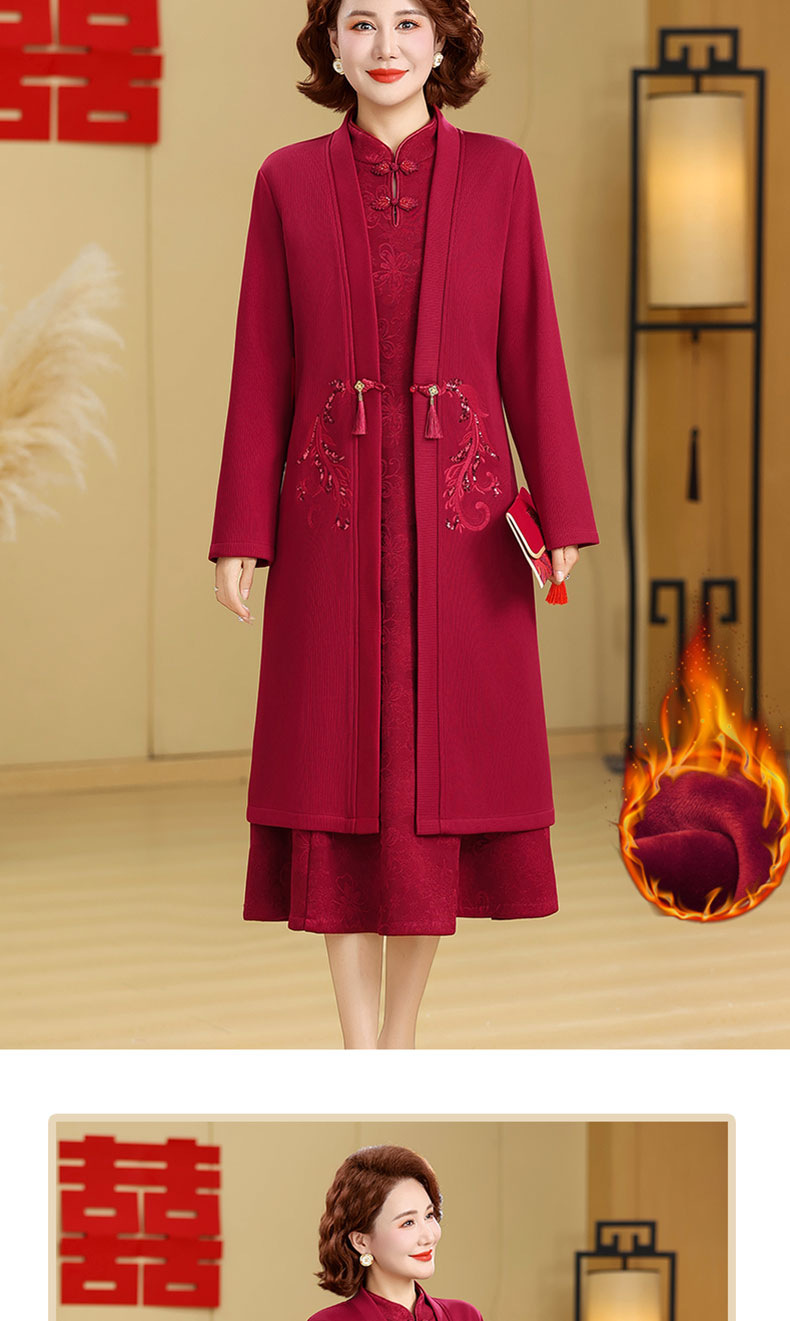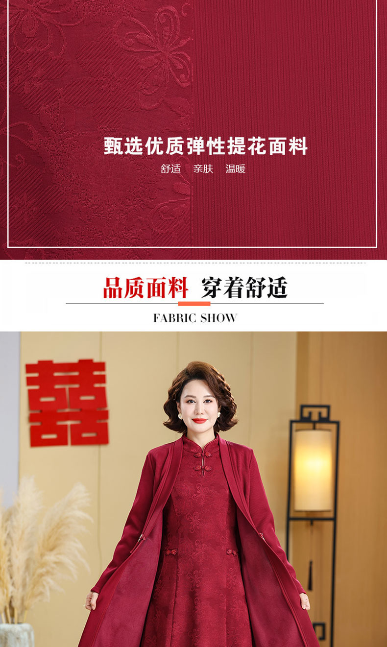 冬天喜婆婆婚宴装加绒加厚2025新款新中式礼服妈妈连衣裙两件套装