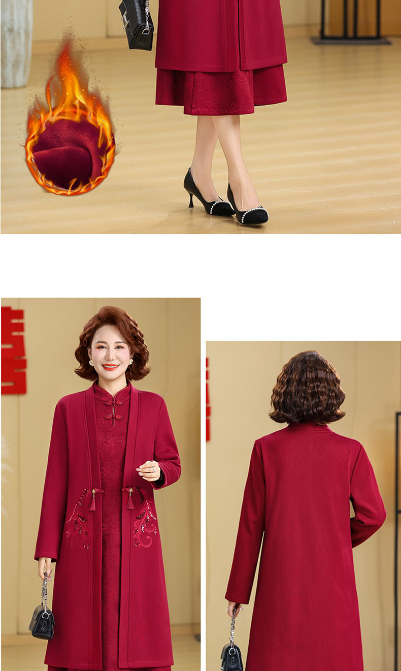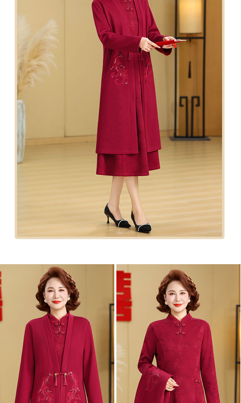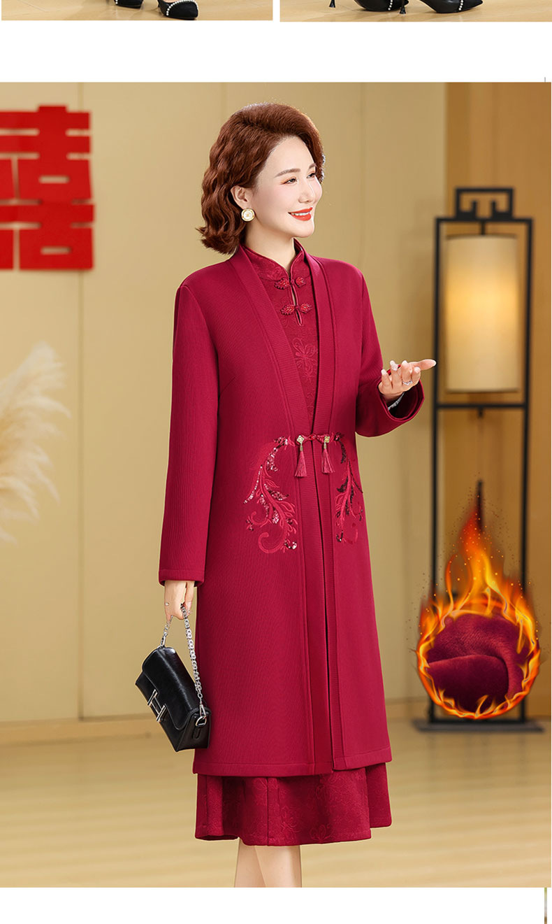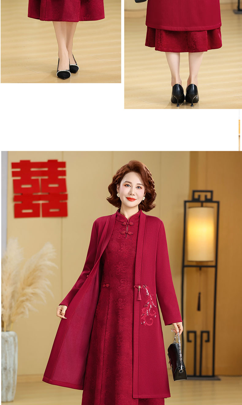 冬天喜婆婆婚宴装加绒加厚2025新款新中式礼服妈妈连衣裙两件套装