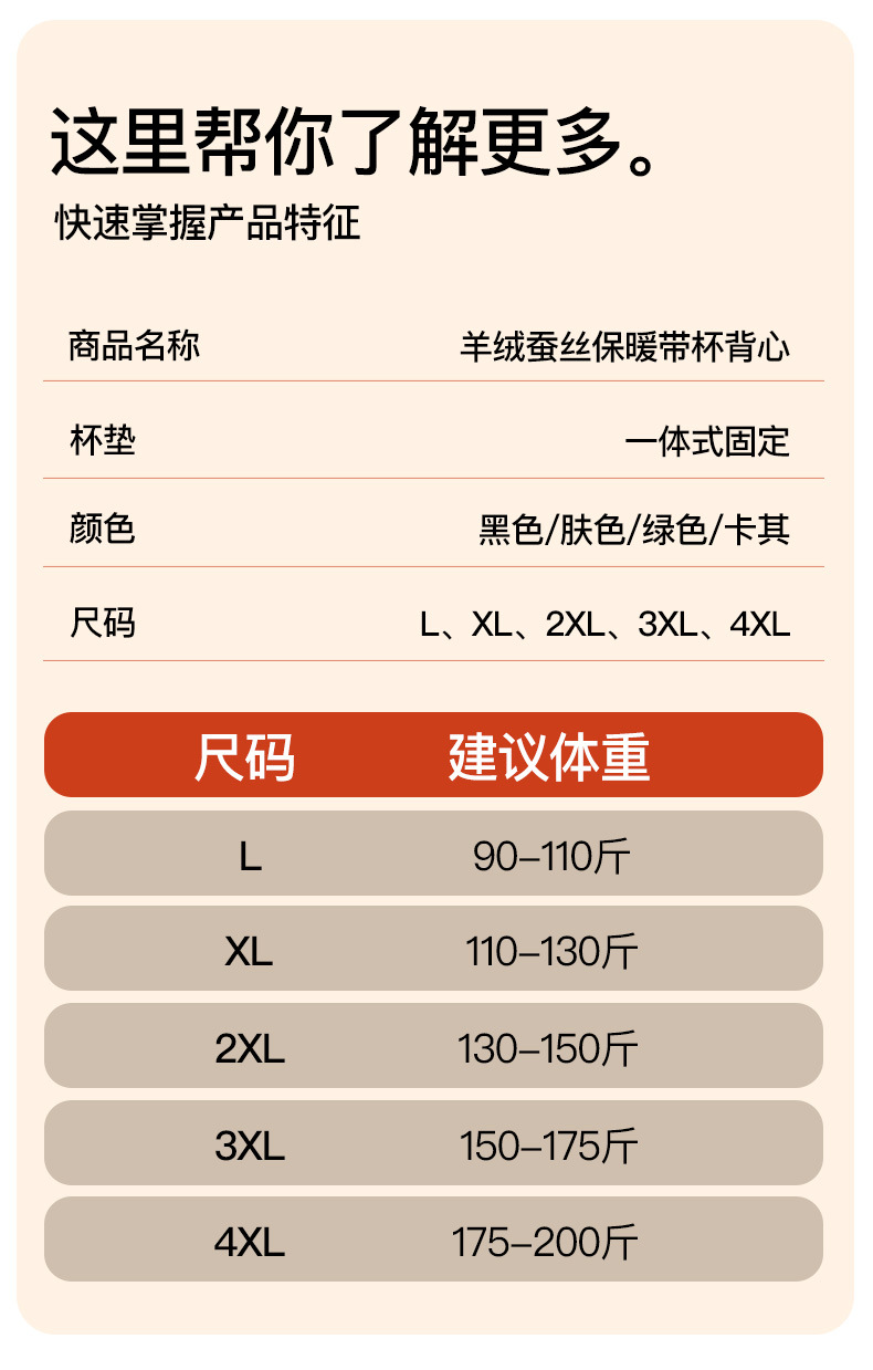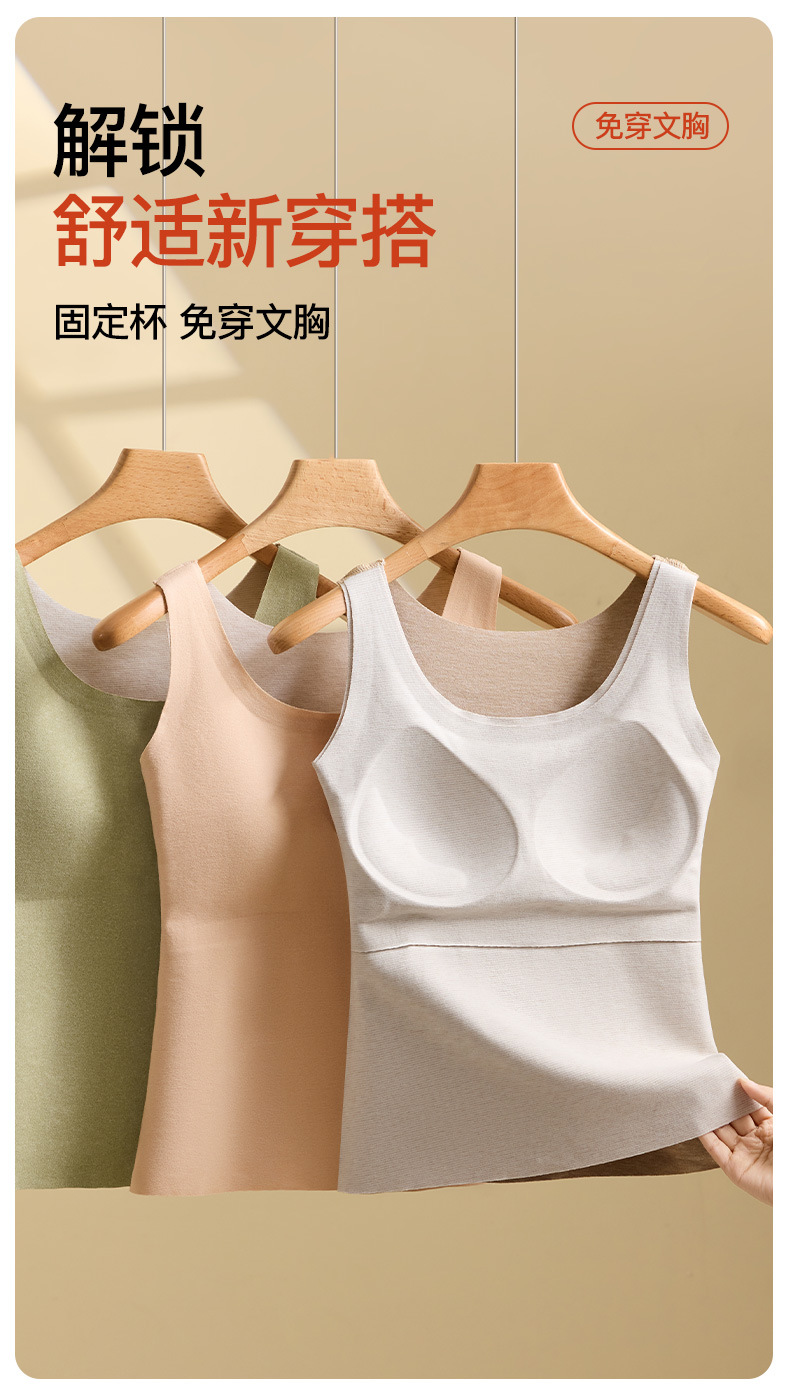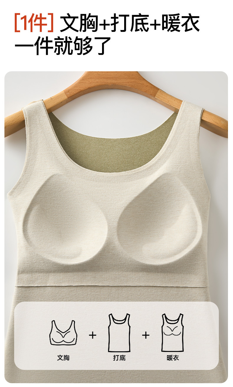 羊绒蚕丝保暖背心女士带胸垫一体式背心加绒加厚大码200斤内衣女