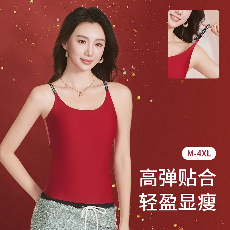 本命年大红色女士背心内搭一体式固定杯美背吊带大码打底背心马年