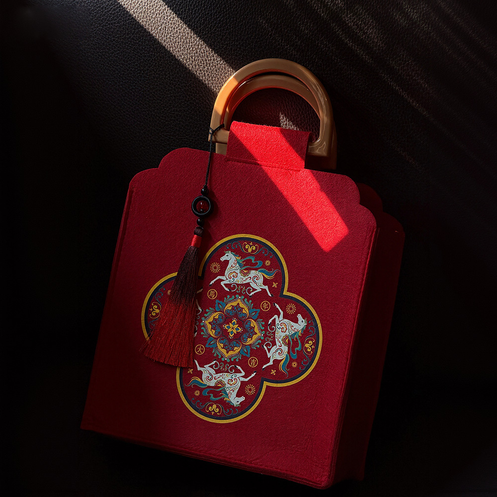 2026马年新年礼盒新款国潮手提毛毡包小红书年货伴手礼新年茶礼