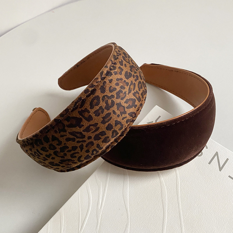 丝绒高颅顶发箍少女气质皮革发饰轻奢豹纹头箍高级感宽边头饰发卡