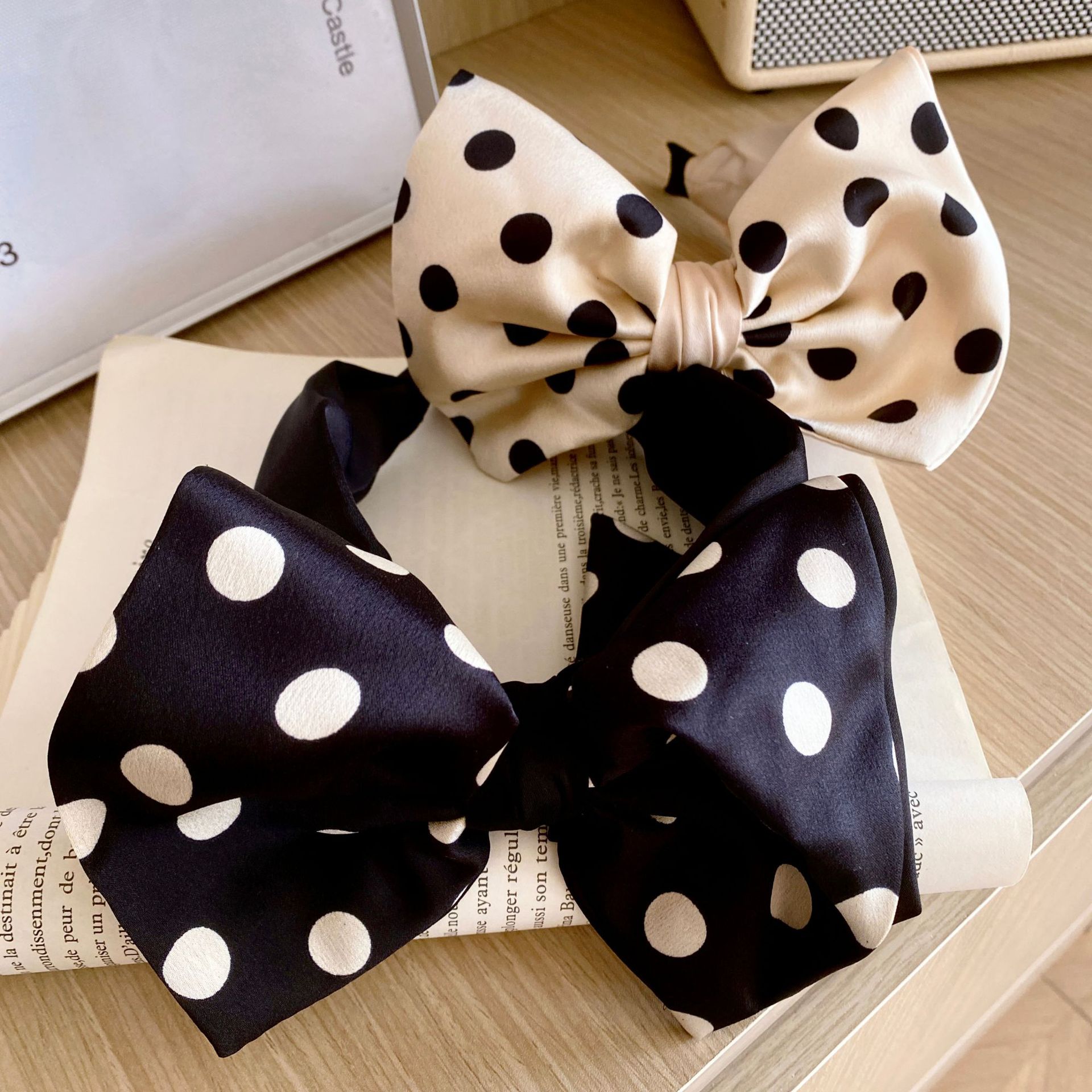 时尚百搭韩版波点宽边发箍气质港风头箍缎面复古蝴蝶结发捆女头饰