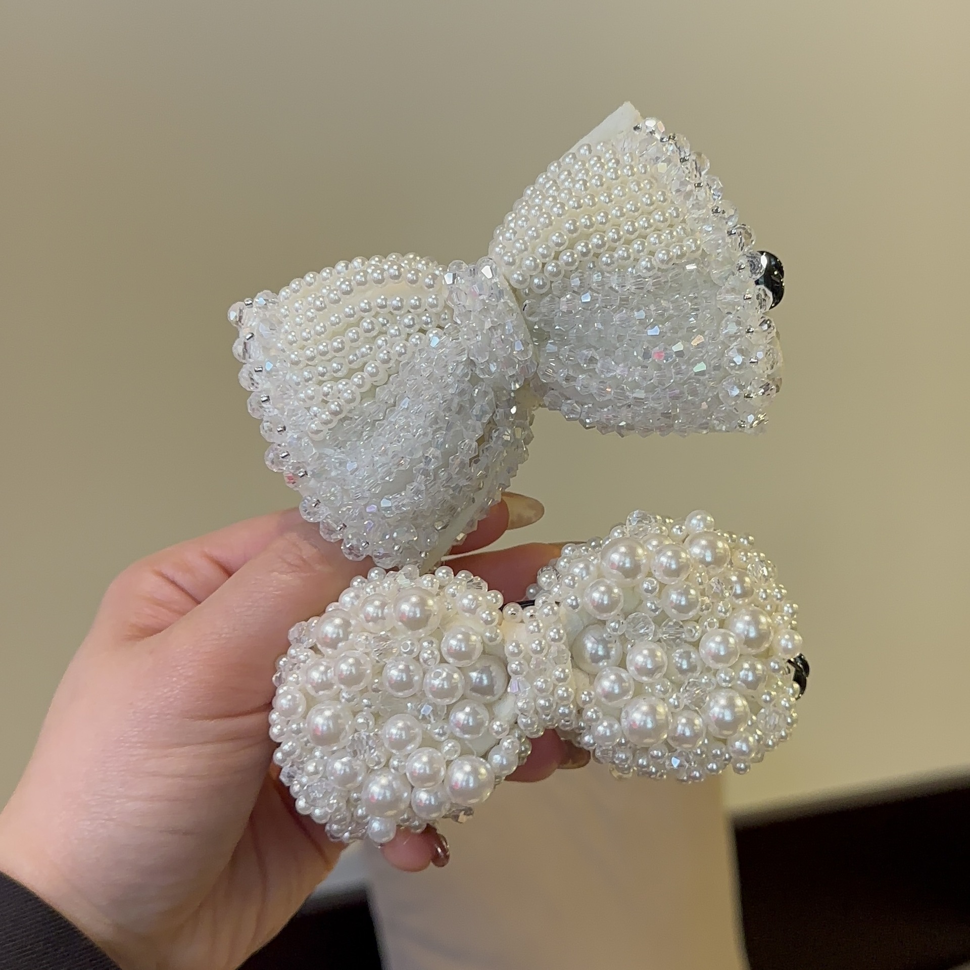 韩国水晶珍珠蝴蝶结发夹后脑勺竖夹法式浪漫气质香蕉夹子马尾横夹