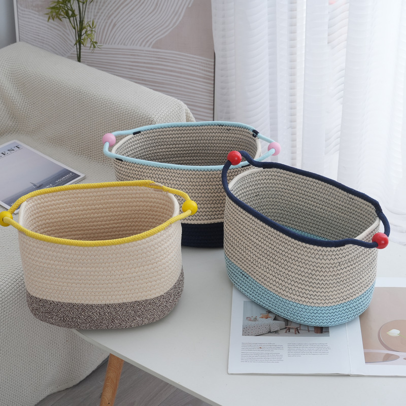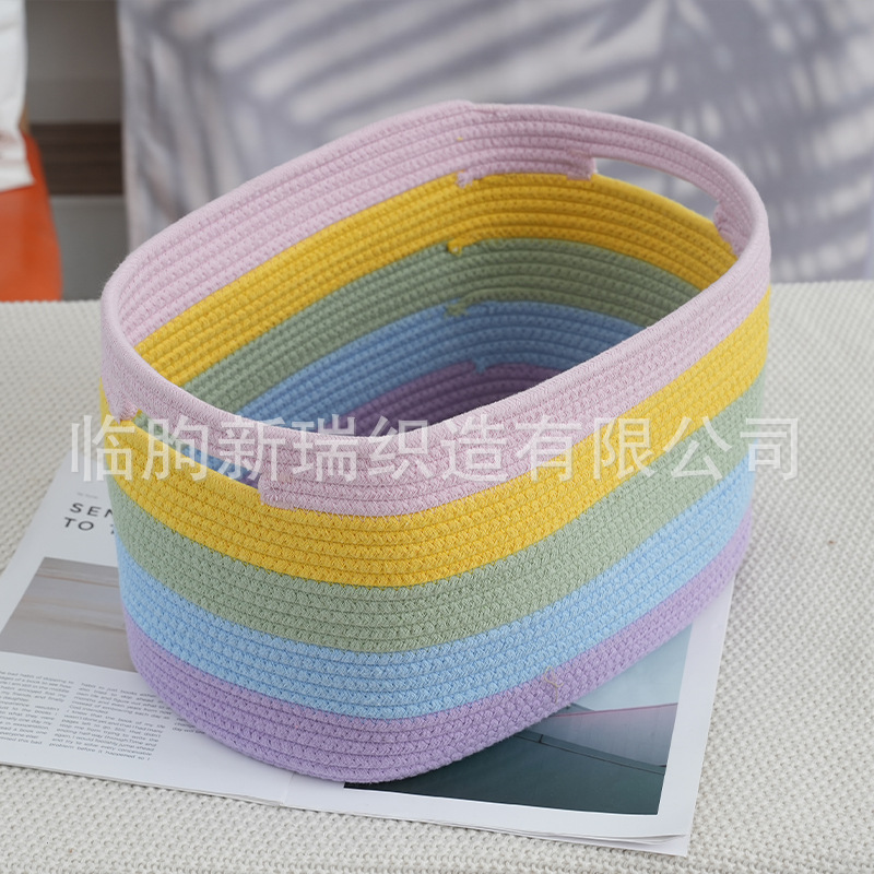 Insカラーコットン糸収纳バスケットオフィス家庭用化粧品スナック雑物编みテーブル整理収纳ボックス