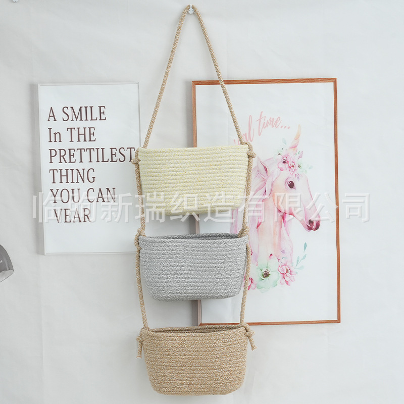 小清新北欧三層吊りバスケット少女心マカロン配色収納バスケット編み化粧品壁掛け式収納