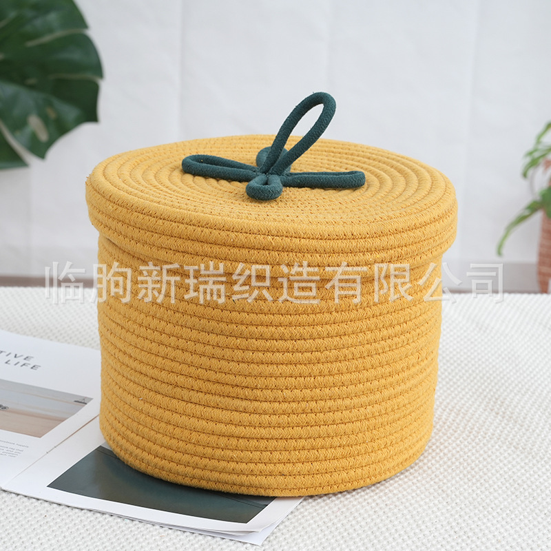 かわいい蓋付き防塵綿糸編み雑物収納かご寝室多機能整理かご玩具間食収納かご