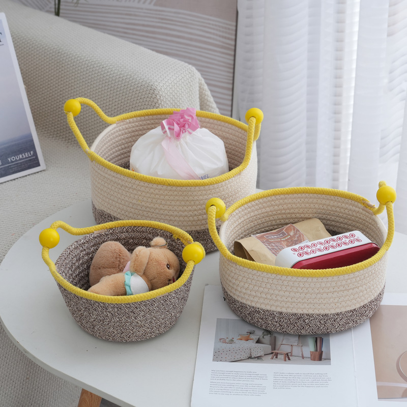 デスクトップ雑货バスケットスナック化粧品収纳バスケット靴下収纳ボックスins风コットン糸编み丸い収纳バスケット