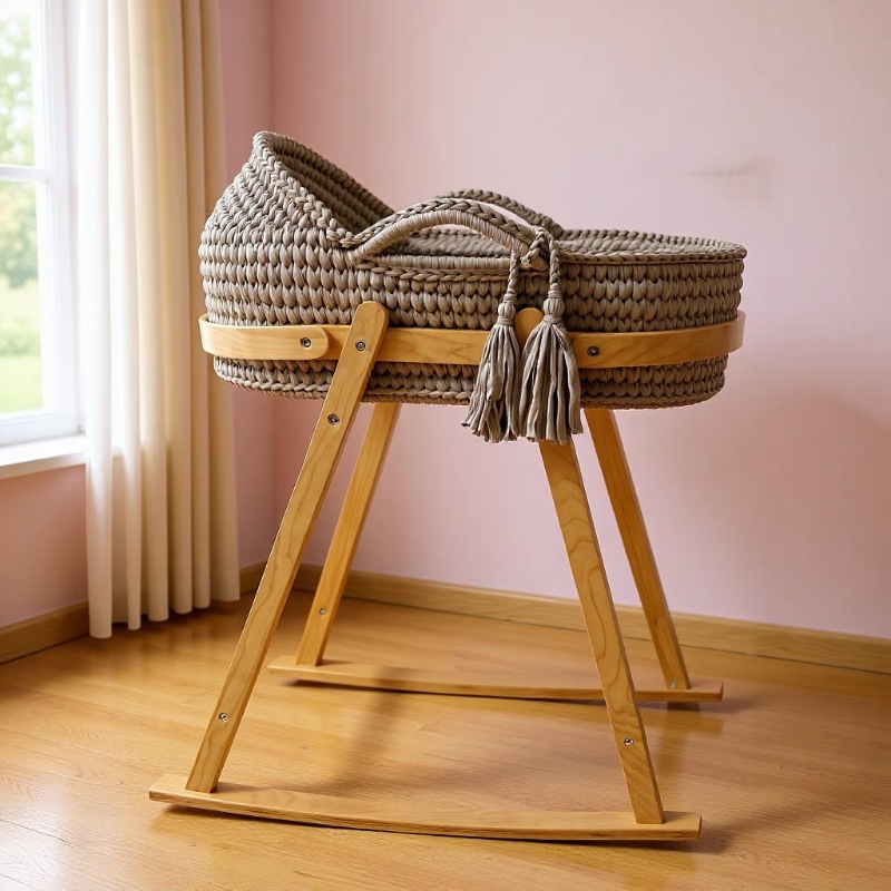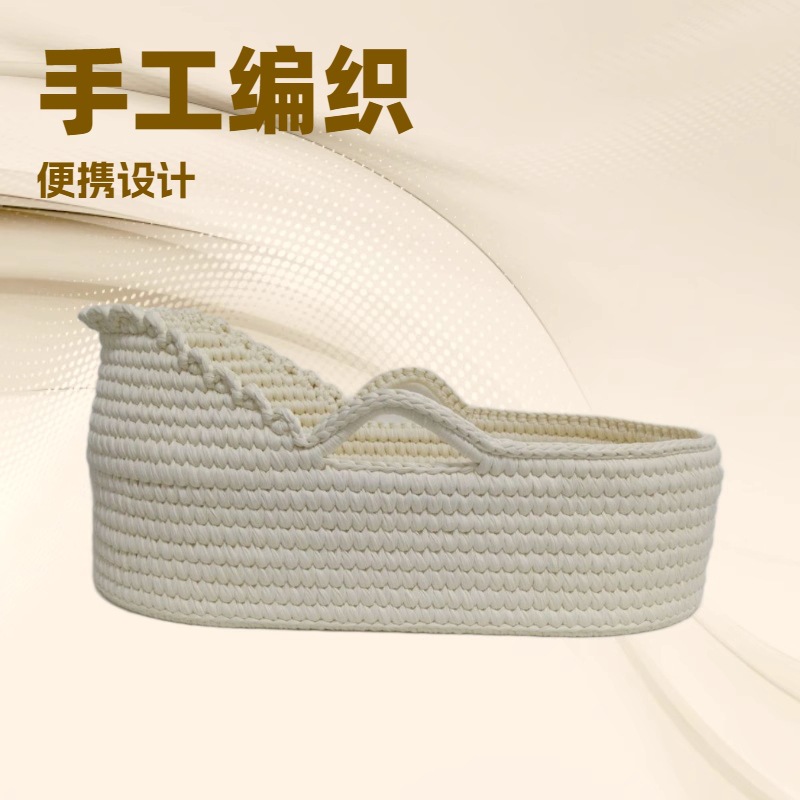 クロスボーダー手作りかぎ針モーゼ揺りかご手提げ枠綿紐編みベビーベッド布編み新生児手提げかご