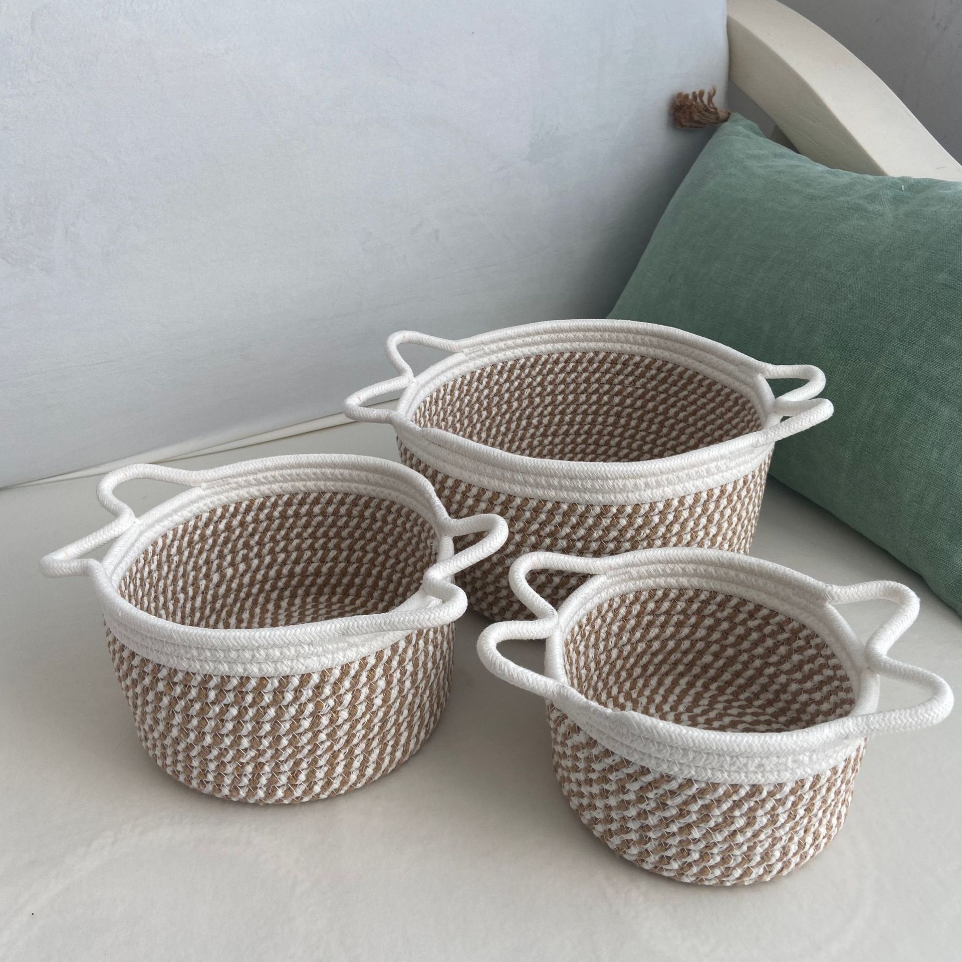 シンプルな猫耳編み綿線収納バスケットデスクトップ収納バスケットベッドサイド収納バスケット家庭用収納バスケット