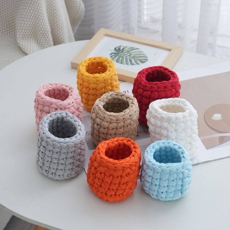 純色編み収納かごシンプル風布条純手編みペン立てメガネ収納桶多機能収納筒