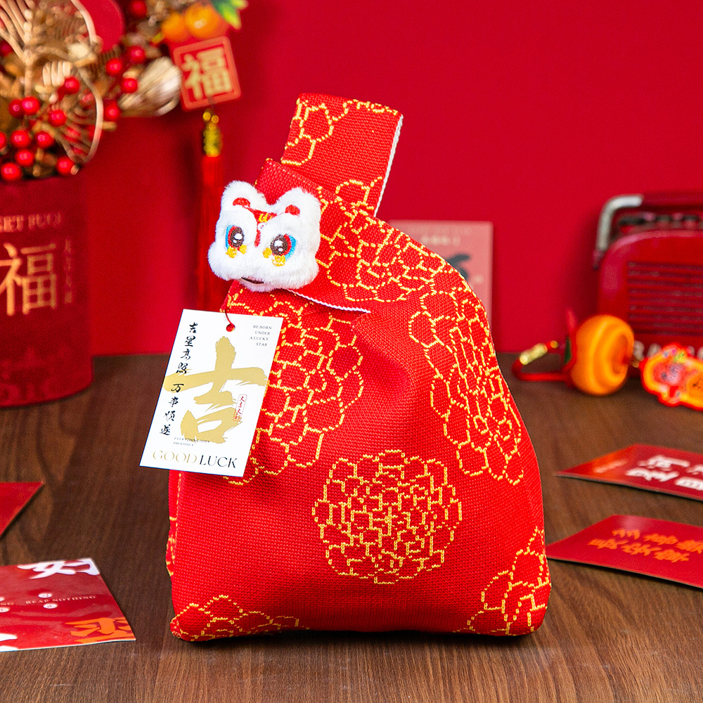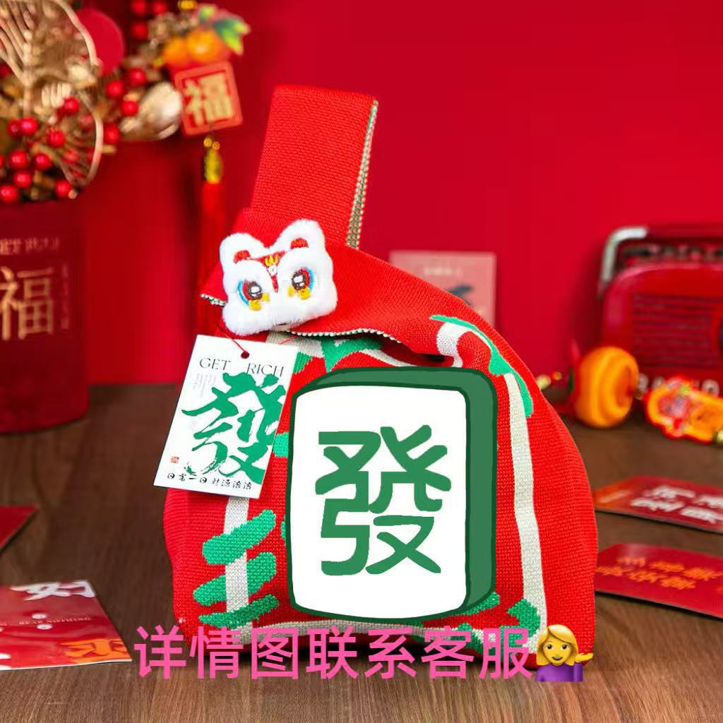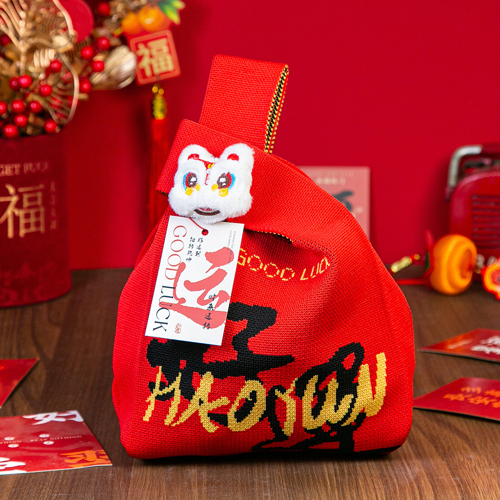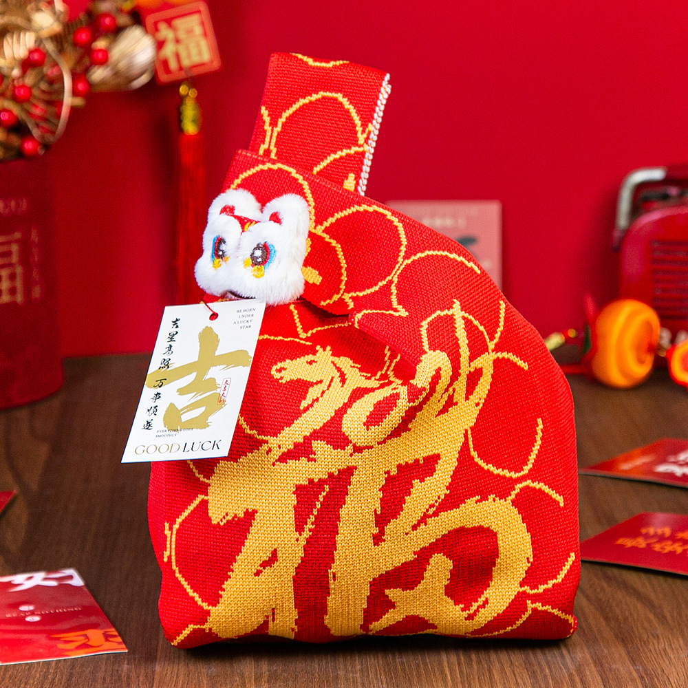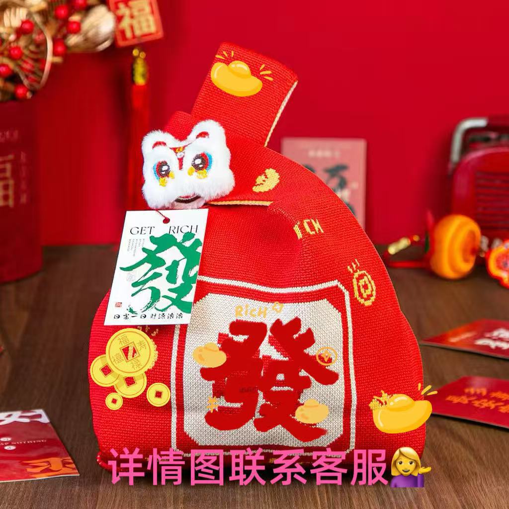 2026新年款红色针织包公司年会福袋礼品袋手拎包结婚伴手礼手提包