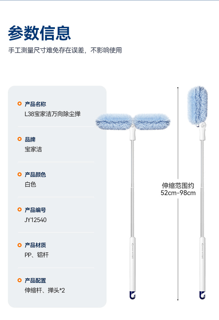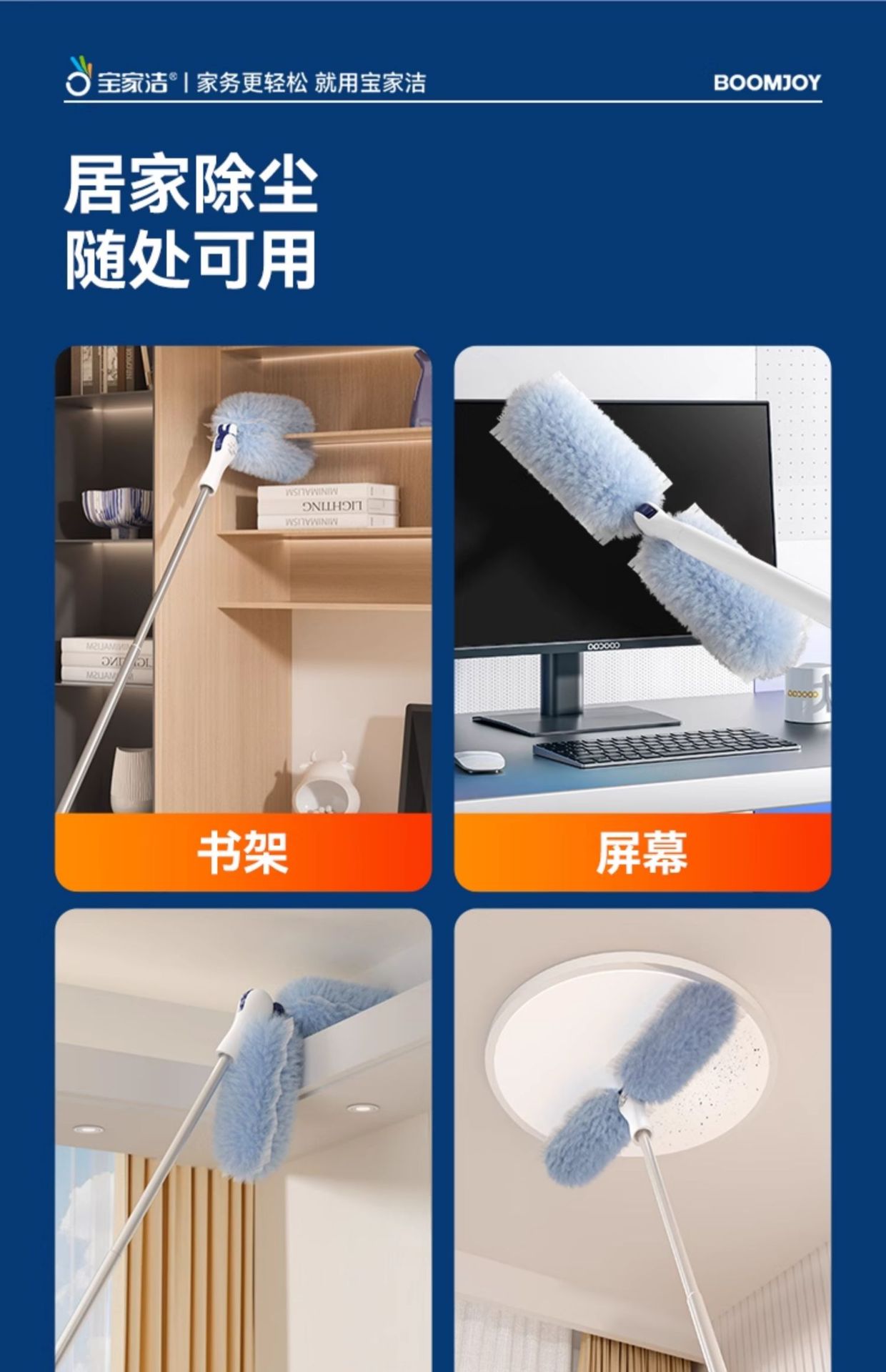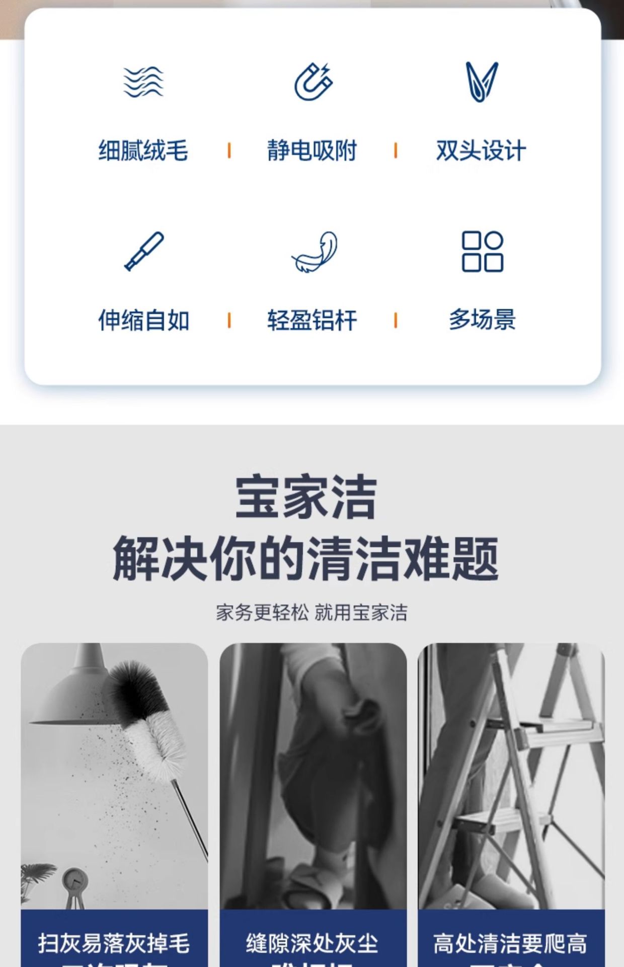 宝家洁双头铝杆静电除尘掸子扫房顶天花板神器可伸缩扫灰家用清洁