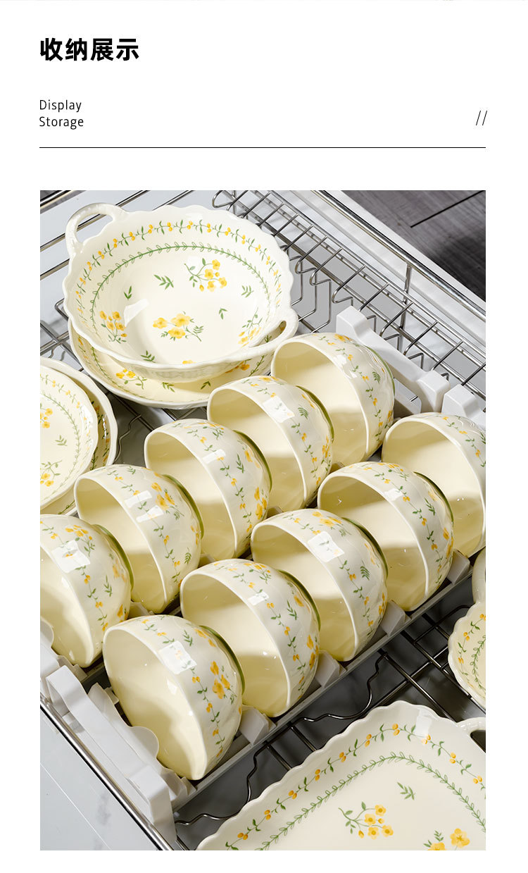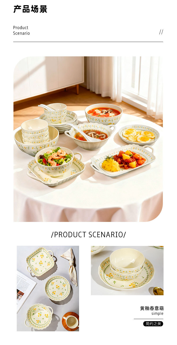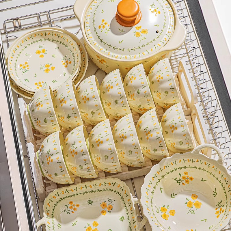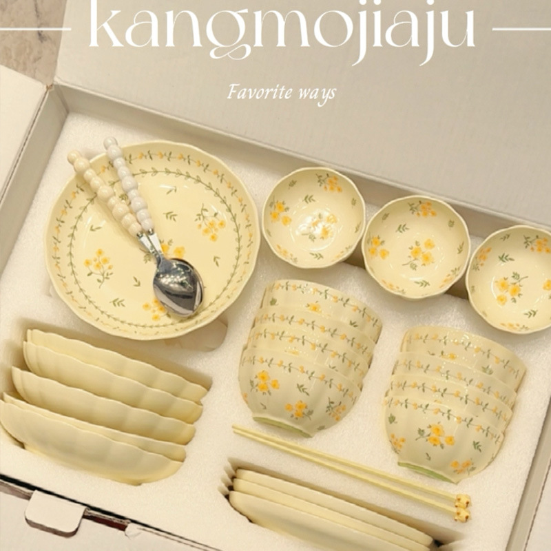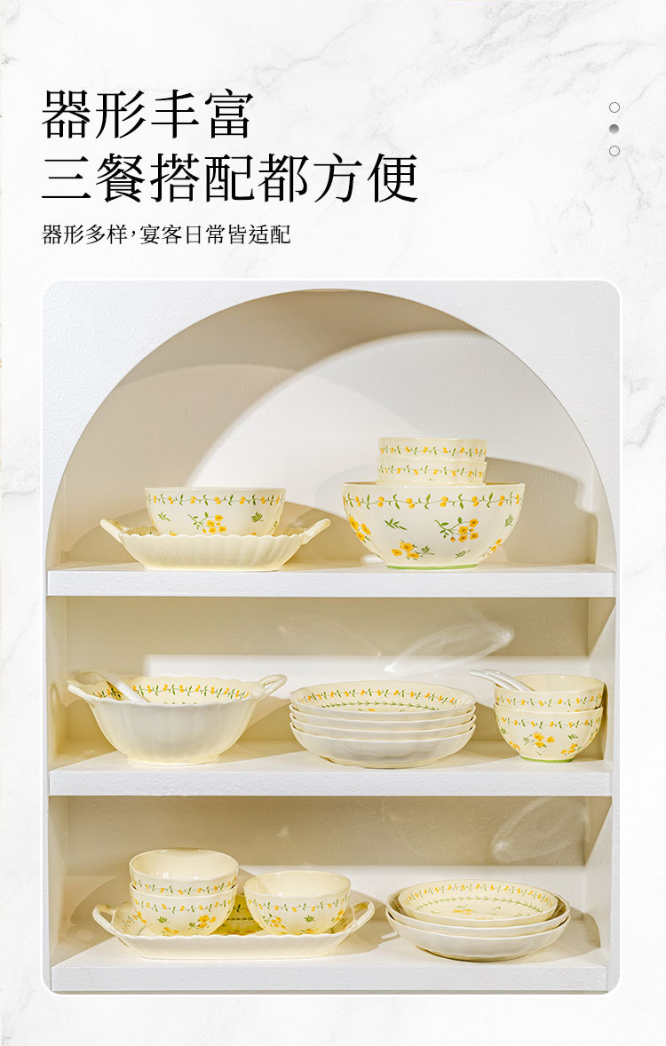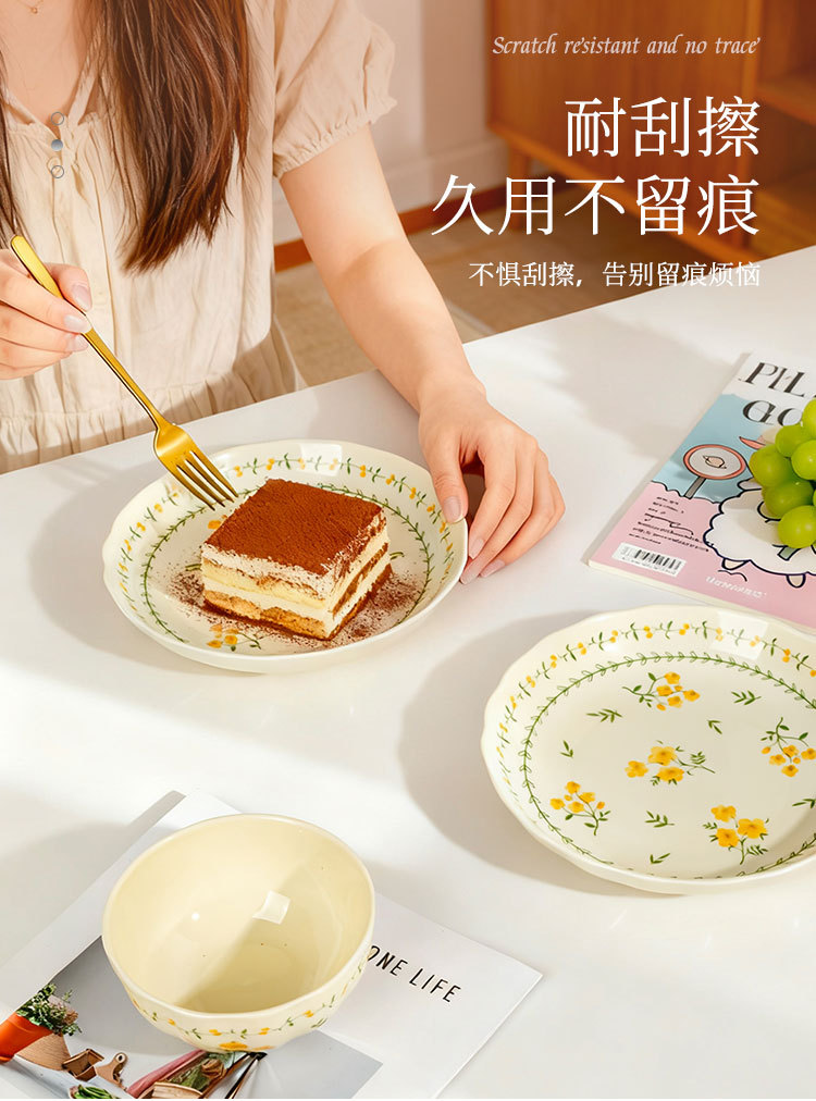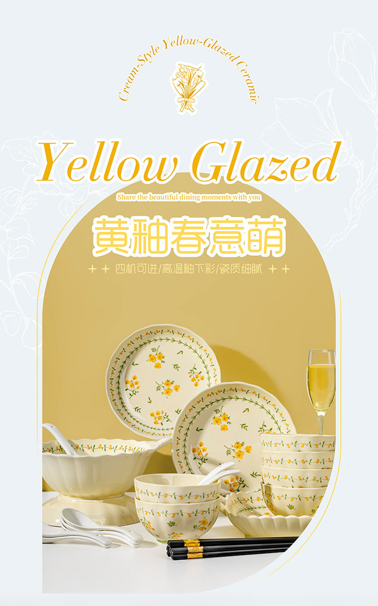 奶黄色碎花碗碟套装家用陶瓷餐具面碗汤碗米饭碗高温釉下彩伴手礼