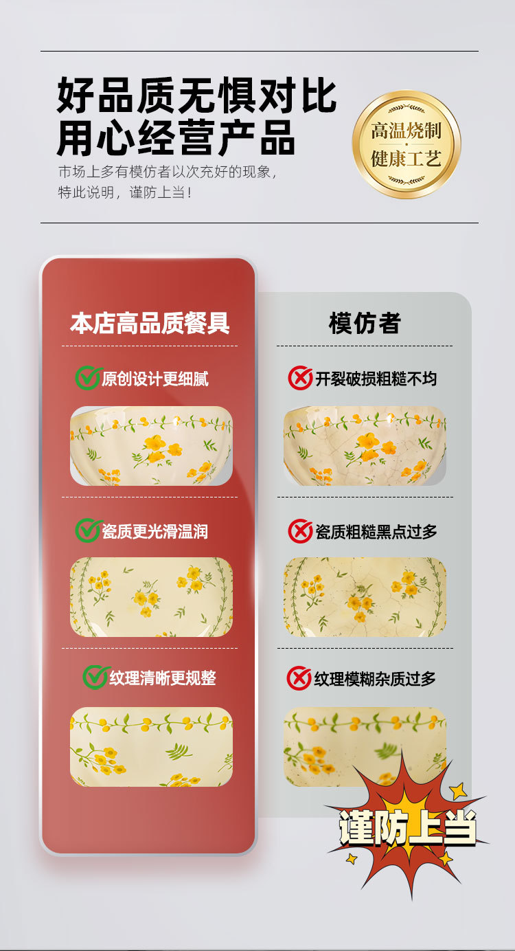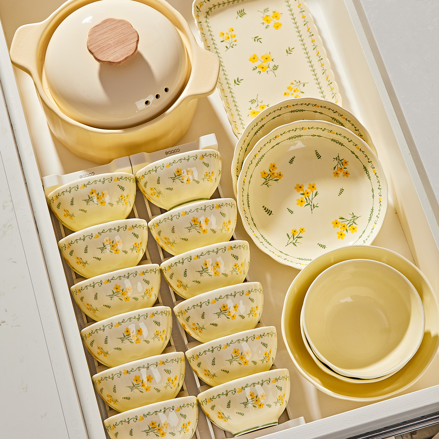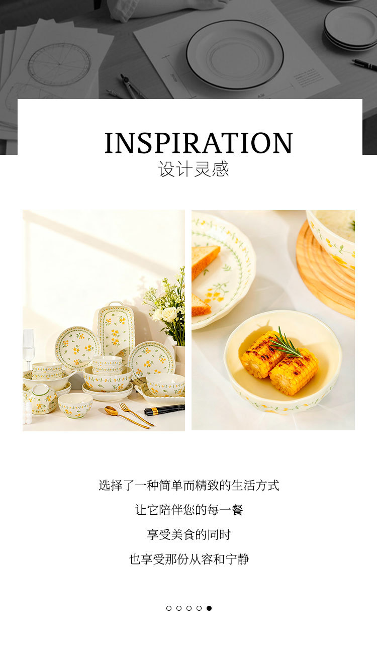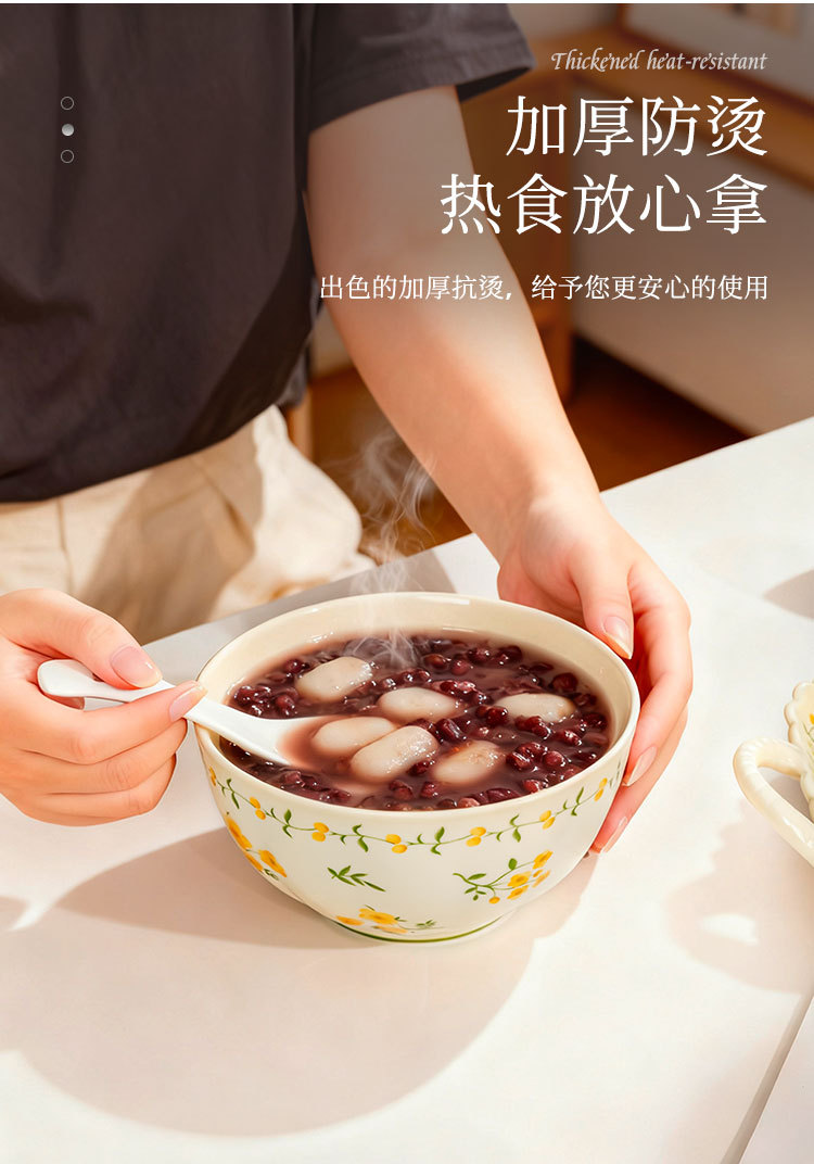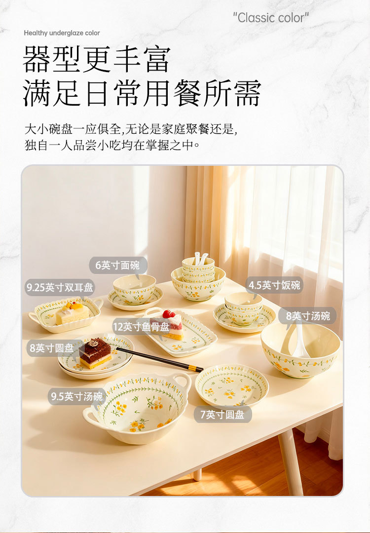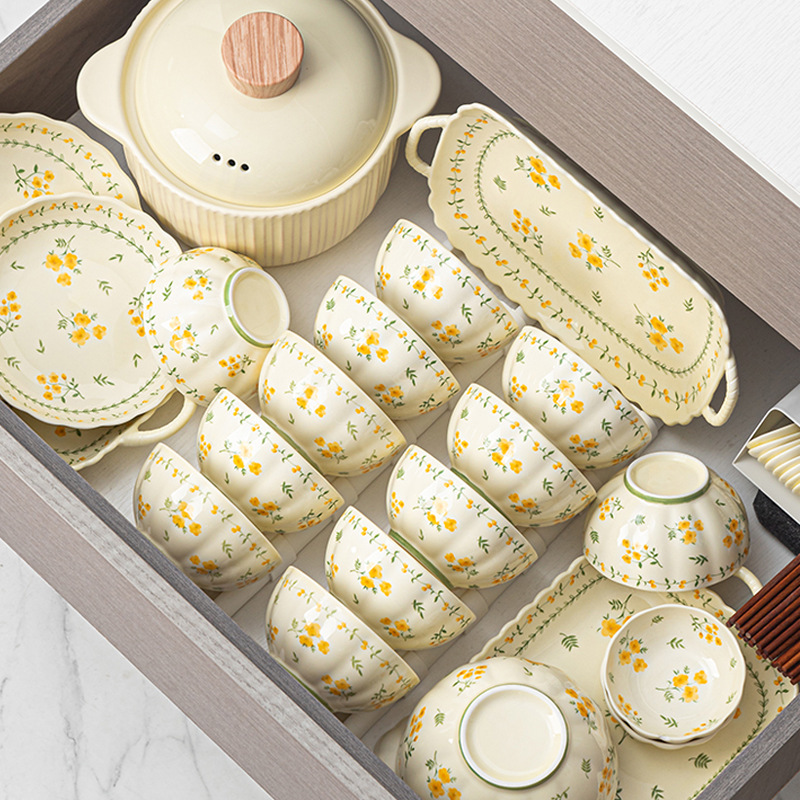 奶黄色碎花碗碟套装家用陶瓷餐具面碗汤碗米饭碗高温釉下彩伴手礼