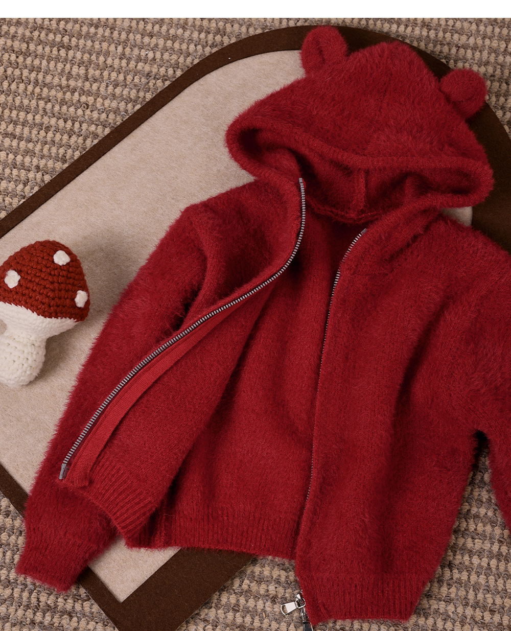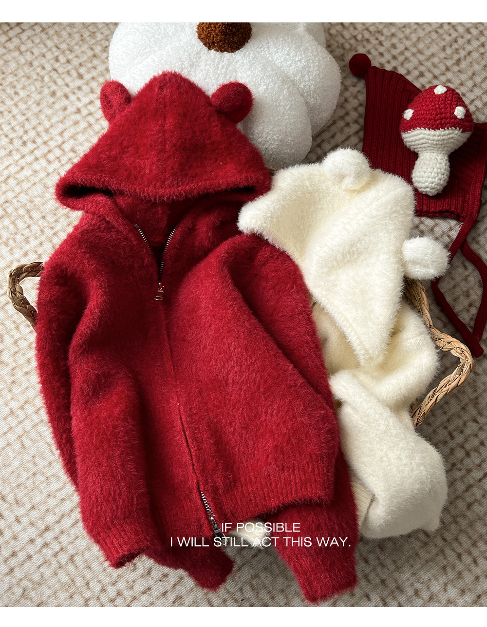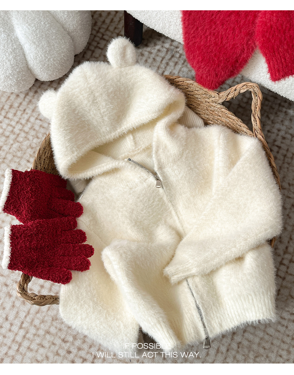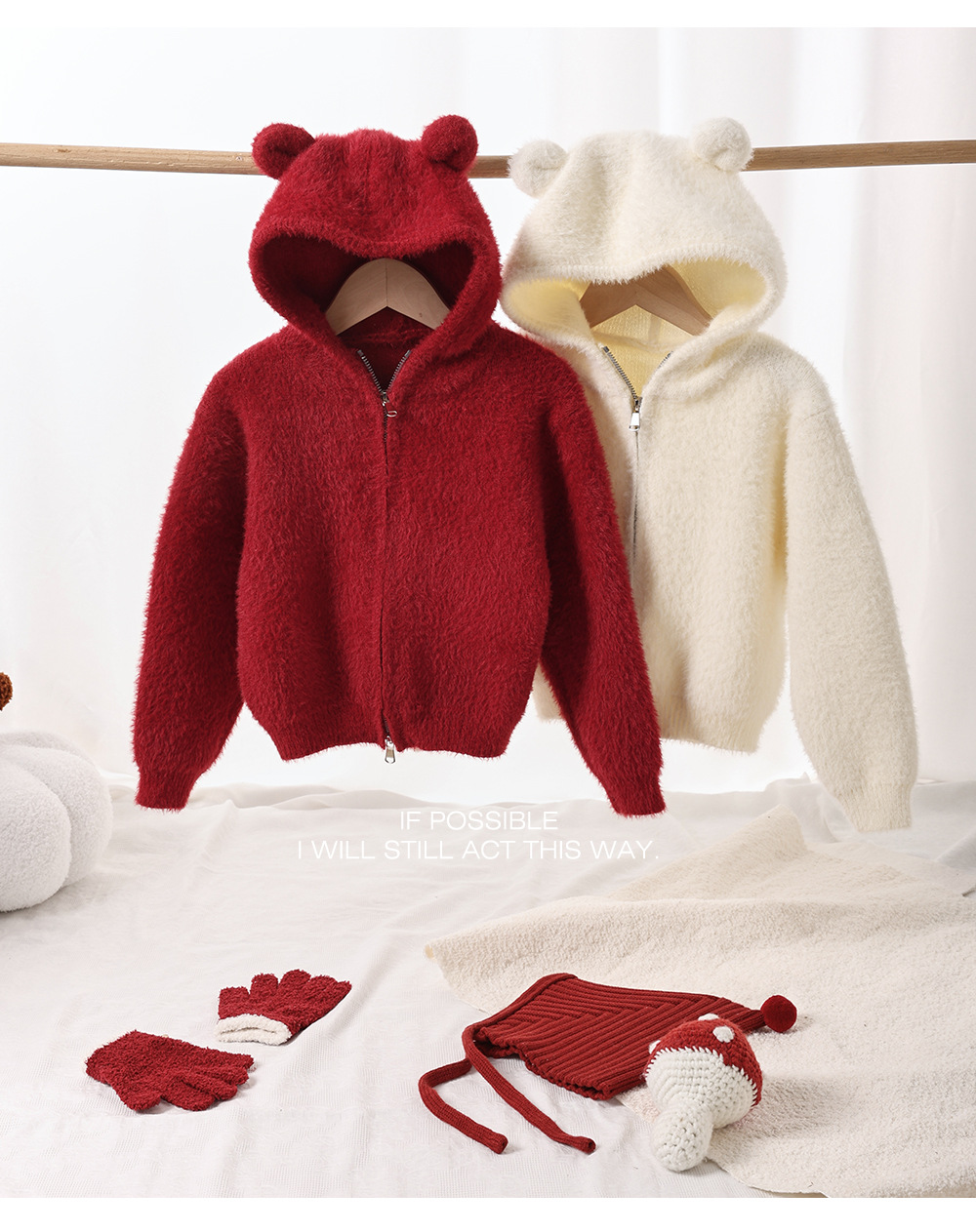 新年儿节日童开衫加厚毛衣耳朵连帽拉链衫26年秋冬新可爱毛绒上衣