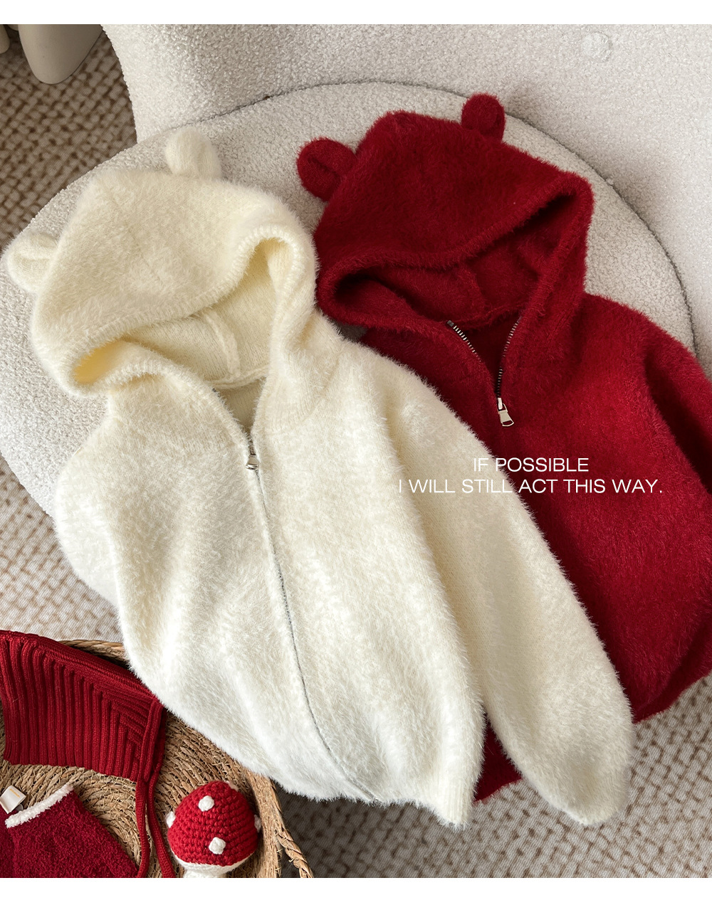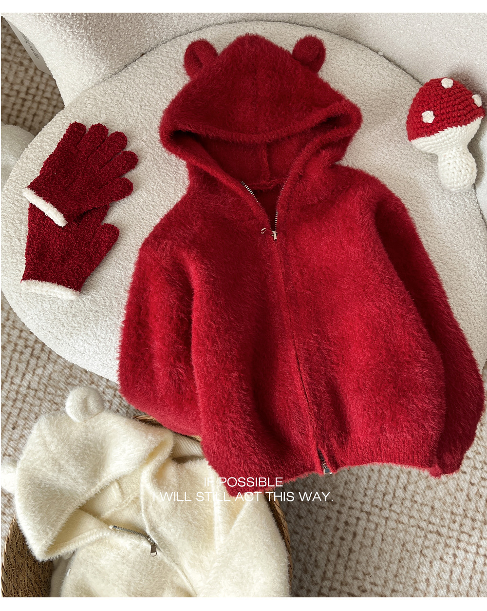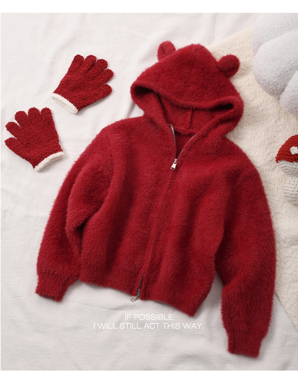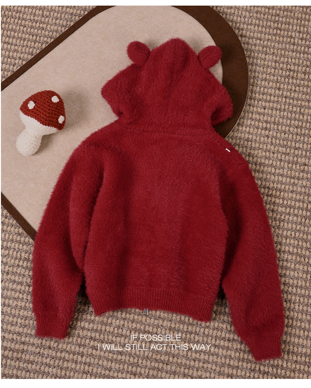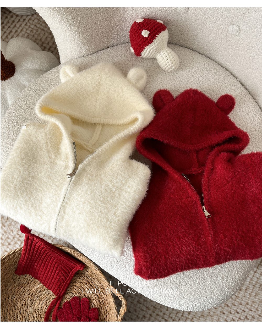 新年儿节日童开衫加厚毛衣耳朵连帽拉链衫26年秋冬新可爱毛绒上衣