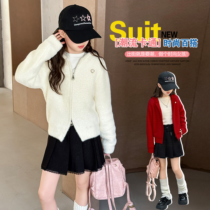 保暖软糯亲肤女童秋装2025新款双头拉链针织毛衣外套开衫韩系穿搭