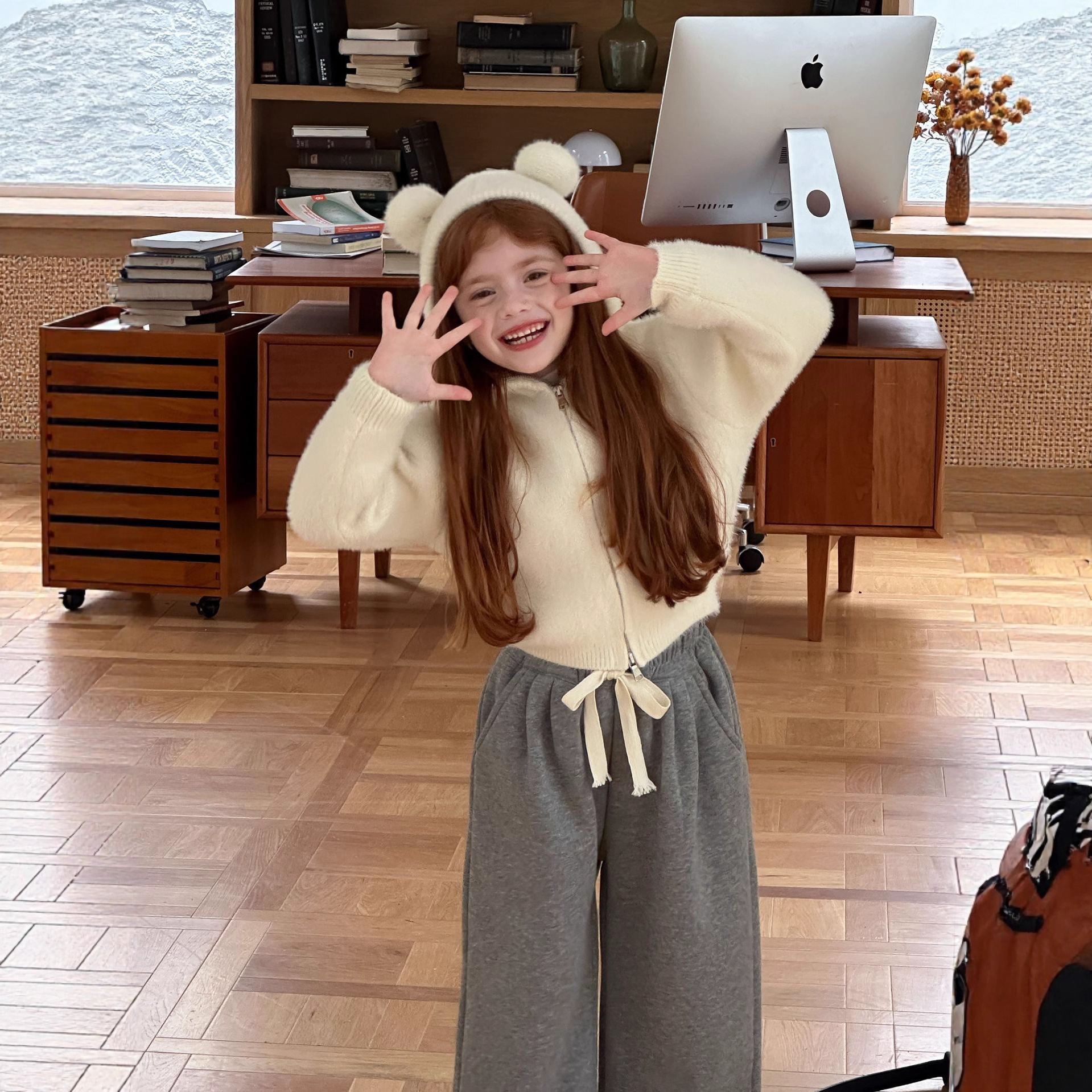 2025冬季新款 韩版女童可爱小熊连帽毛衣加厚毛线针织拉链针织衫