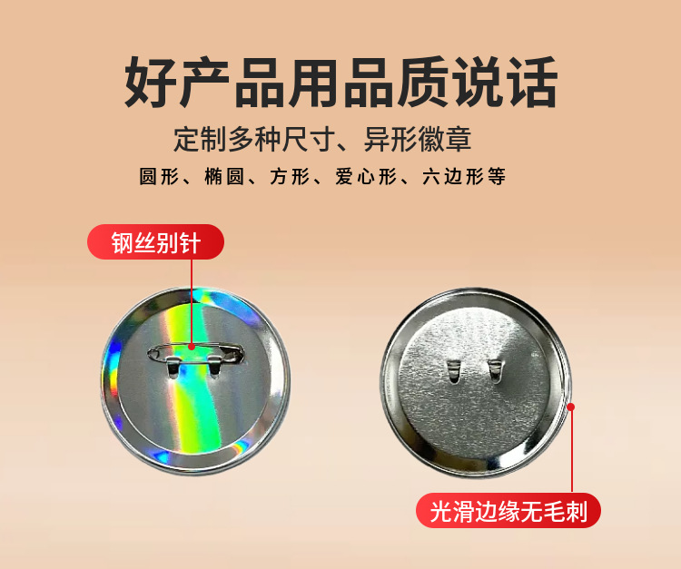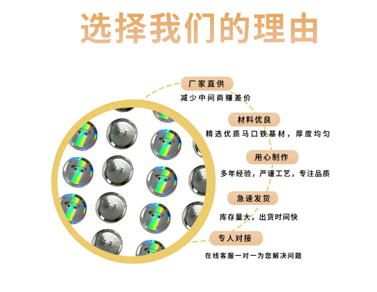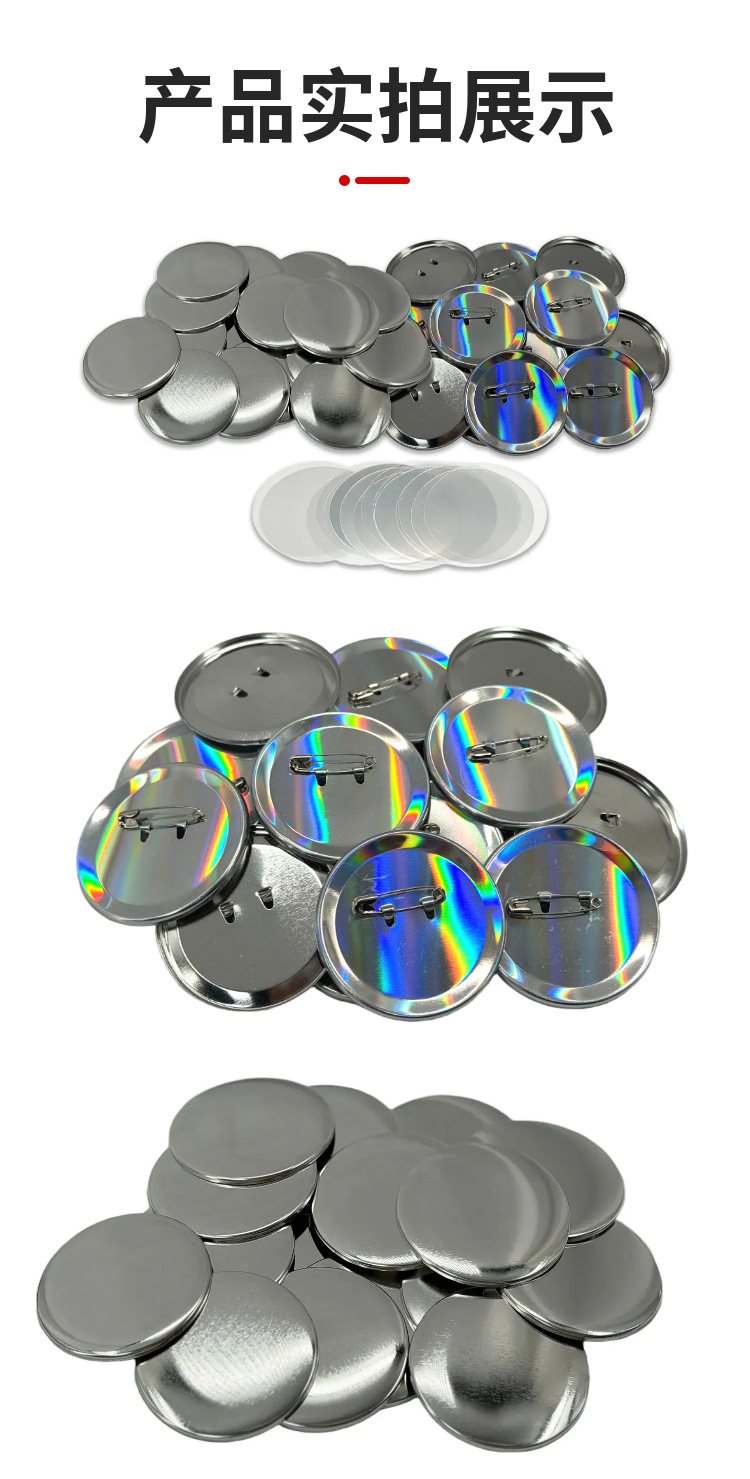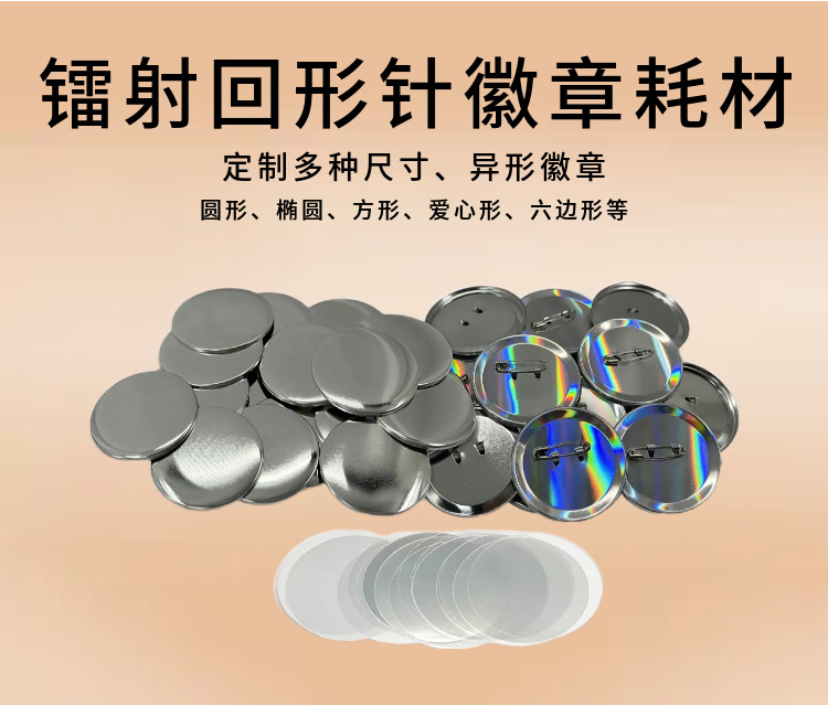 工厂批发徽章耗材马口铁吧唧底镭射回形针胸章工号牌定制