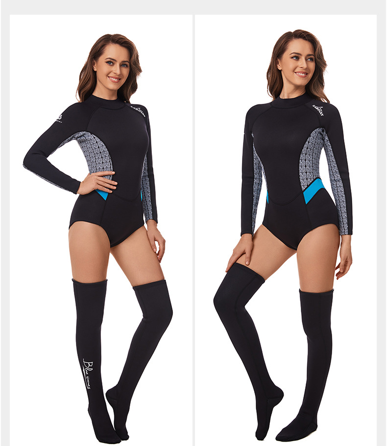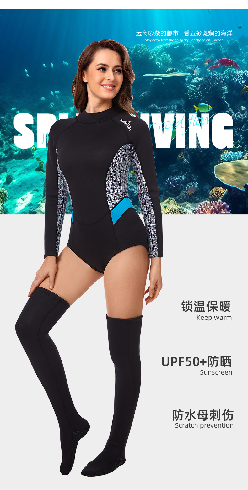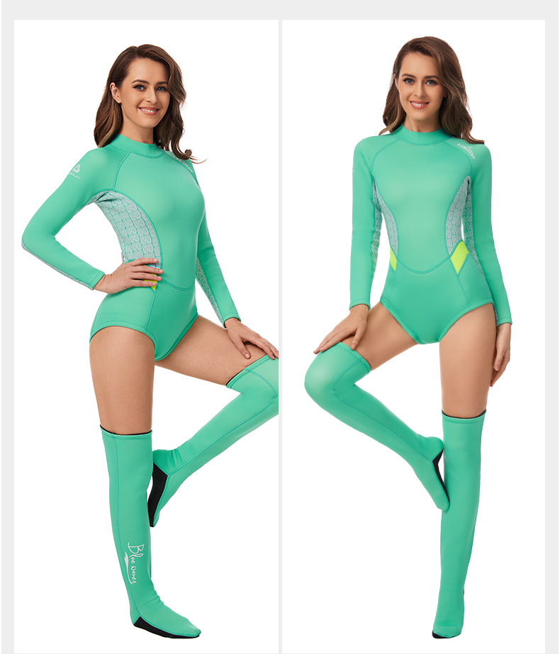 新款户外运动潜水服女浮潜防寒保暖水母服分体长袖长袜游泳衣套装