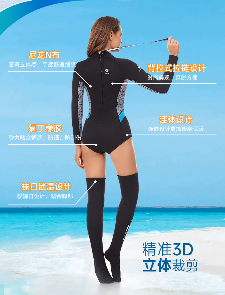 スプリット新しい女性のプロフェッショナル女性ダイビングソックスワンピース厚く暖かいフルセットの装備日焼け止めサーフィンスーツダイビングスーツ