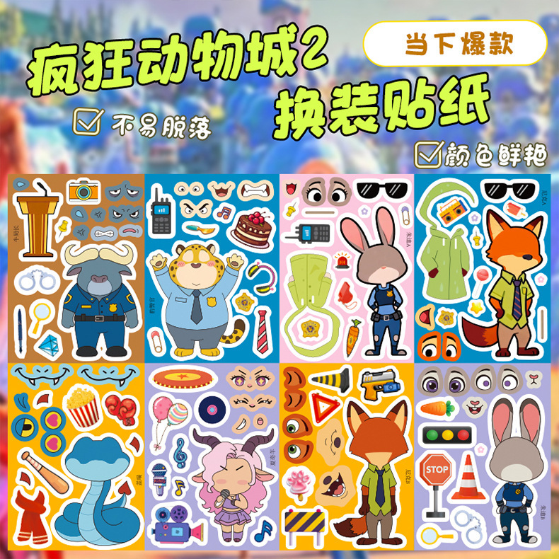 疯狂动物城不干胶贴纸diy创意朱迪换装贴纸儿童贴纸换脸贴纸diy