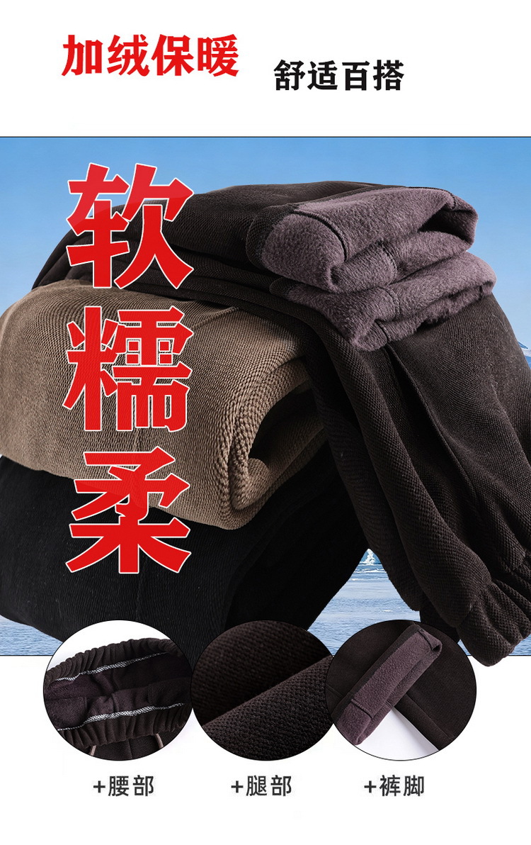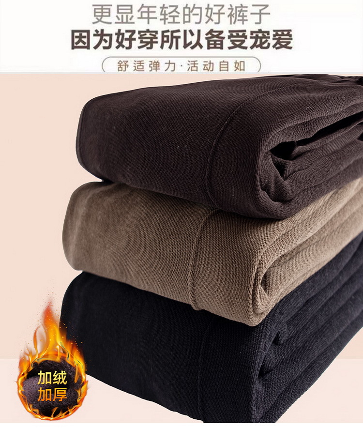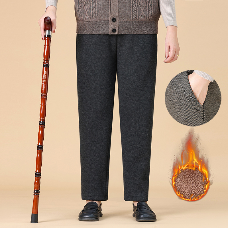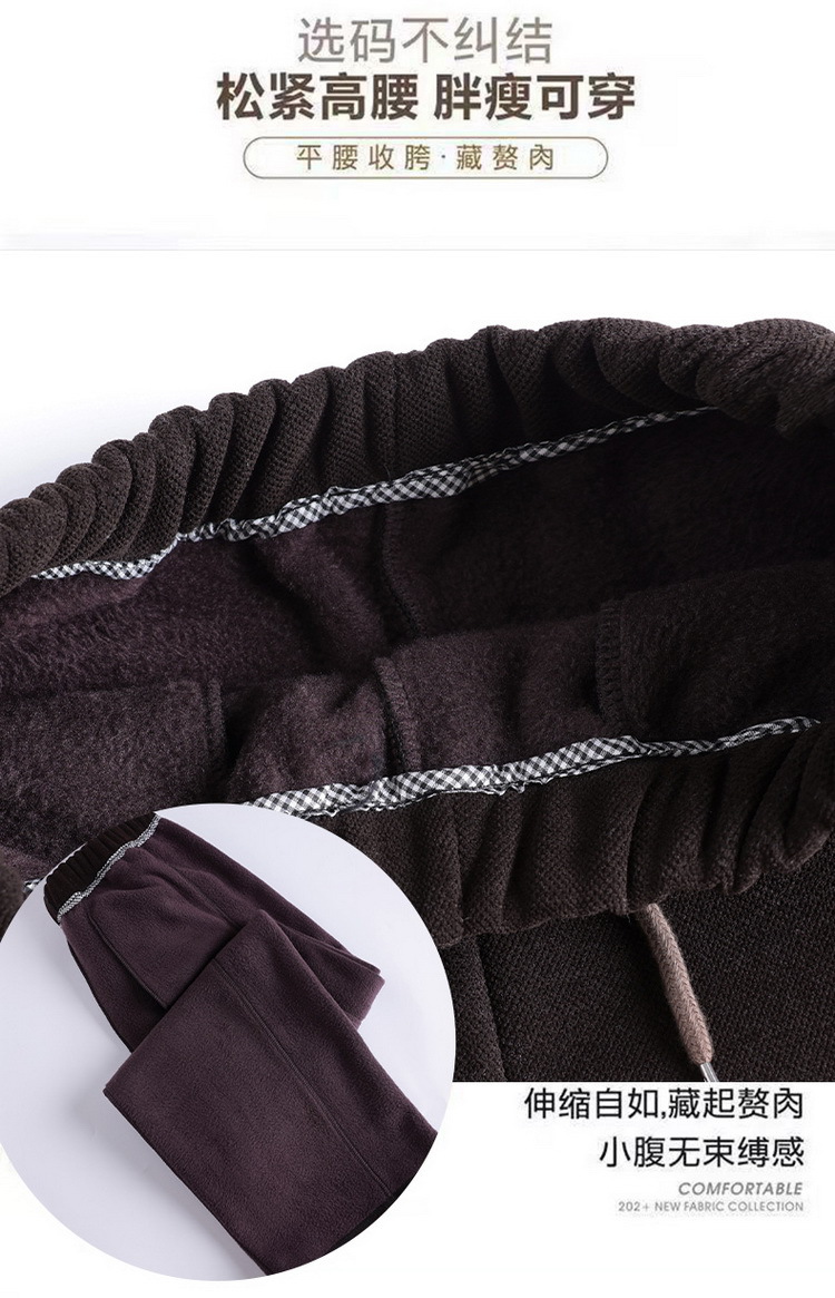 妈妈裤加绒加厚外穿冬季中老年保暖裤弹力高腰直筒弹力休闲老太太