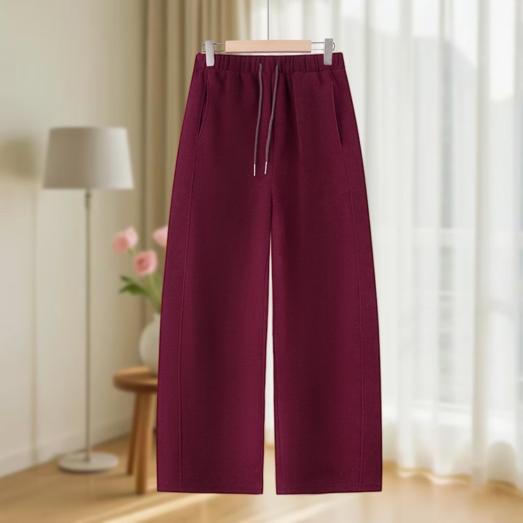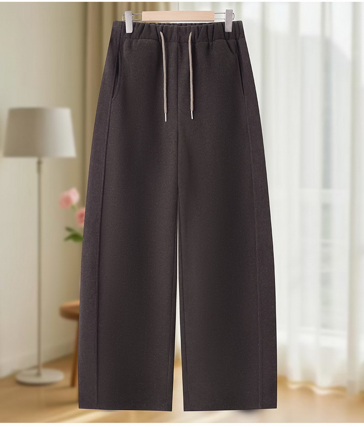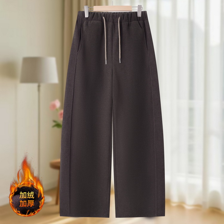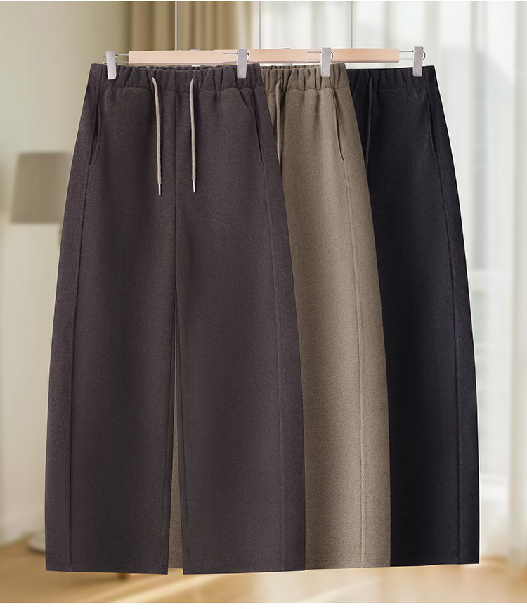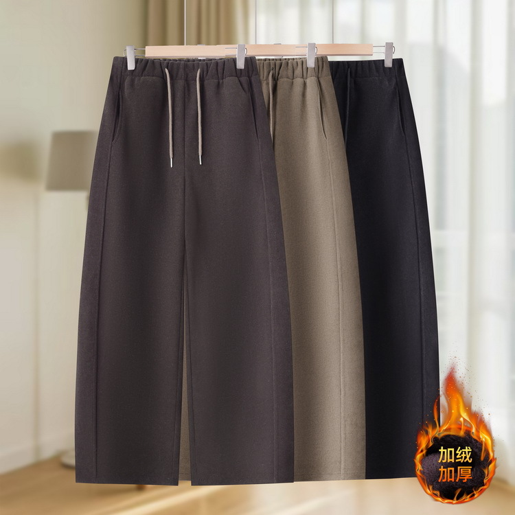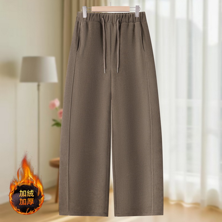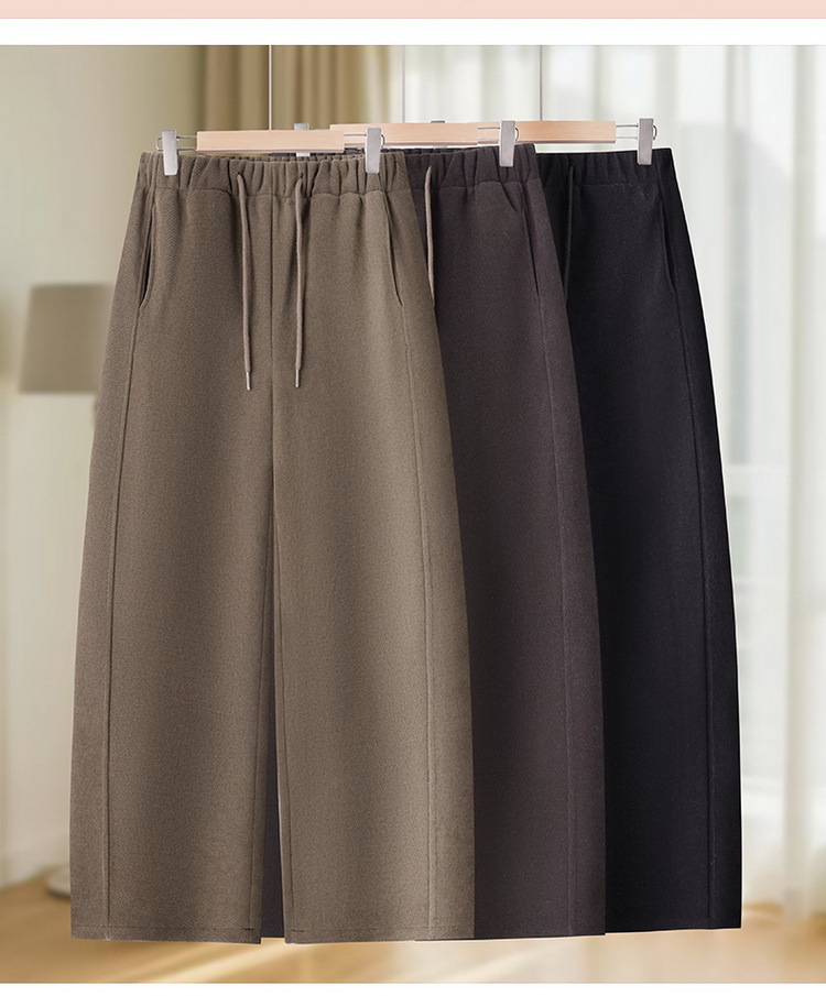 妈妈秋冬装毛呢直筒阔腿裤中老年女士松紧腰加绒加厚大码长裤