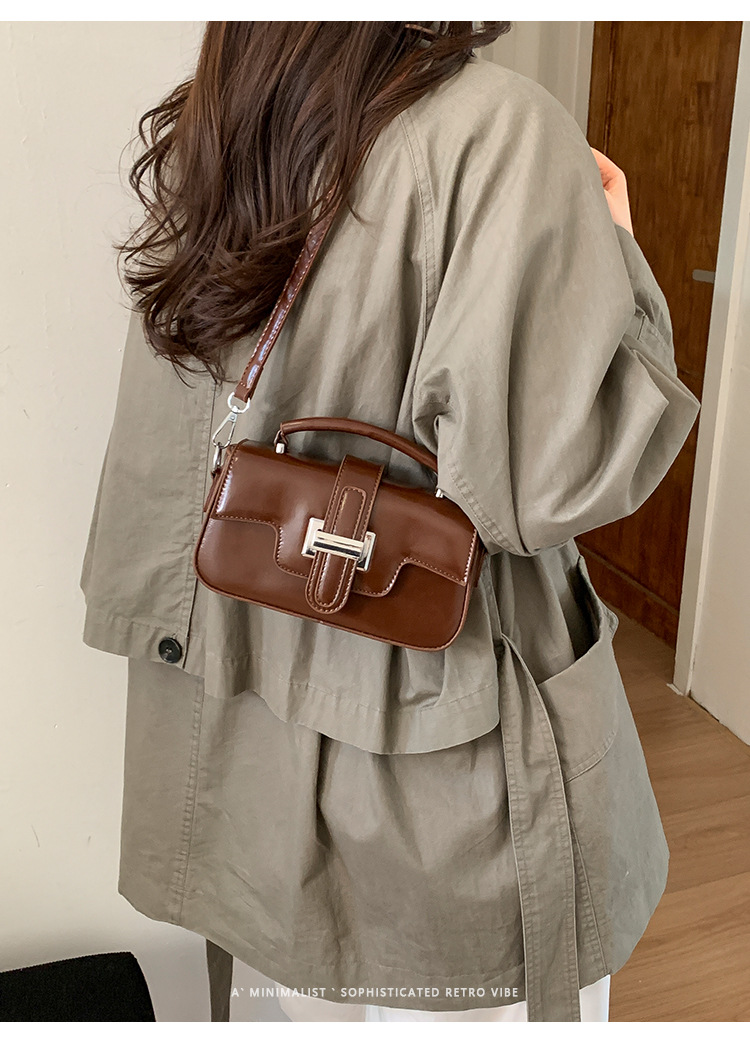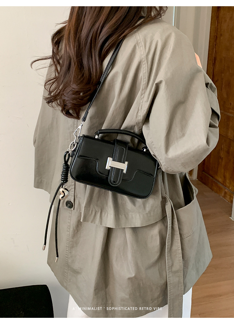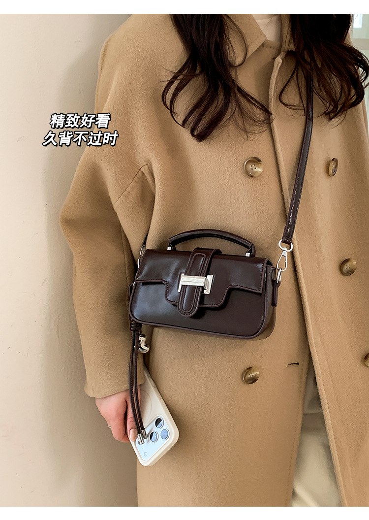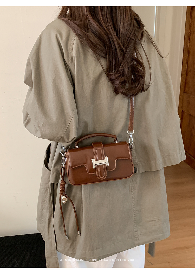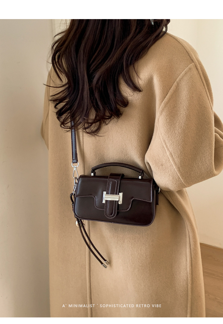 复古小众设计手提包轻奢高级感锁扣简约小方包百搭洋气单肩斜挎包