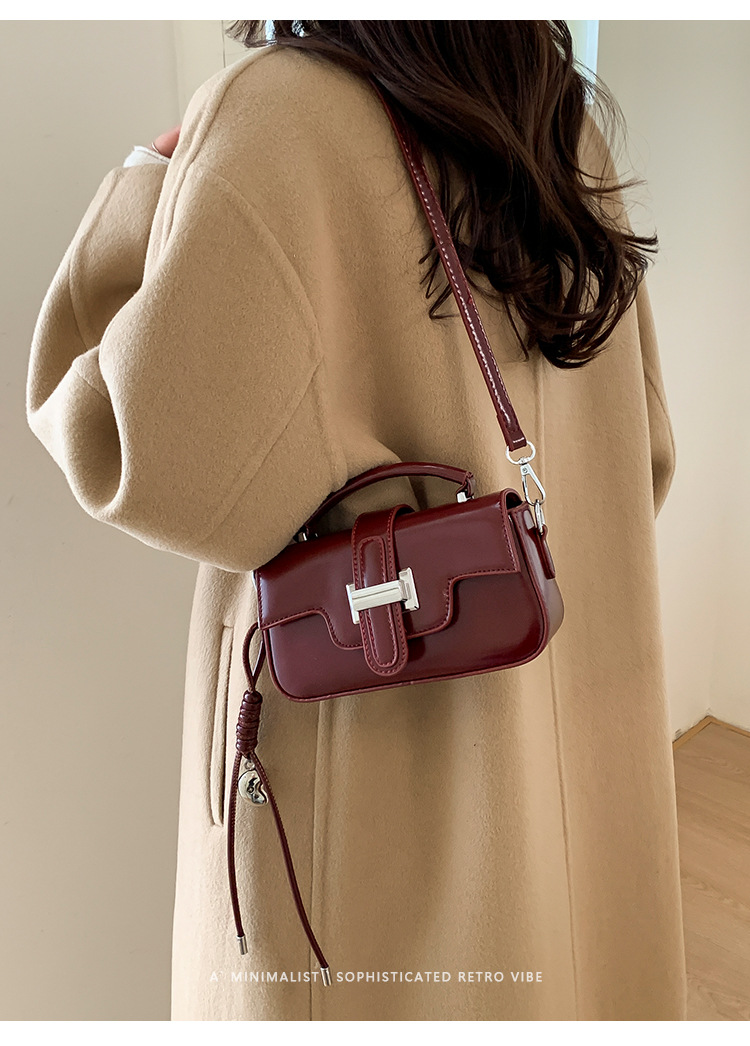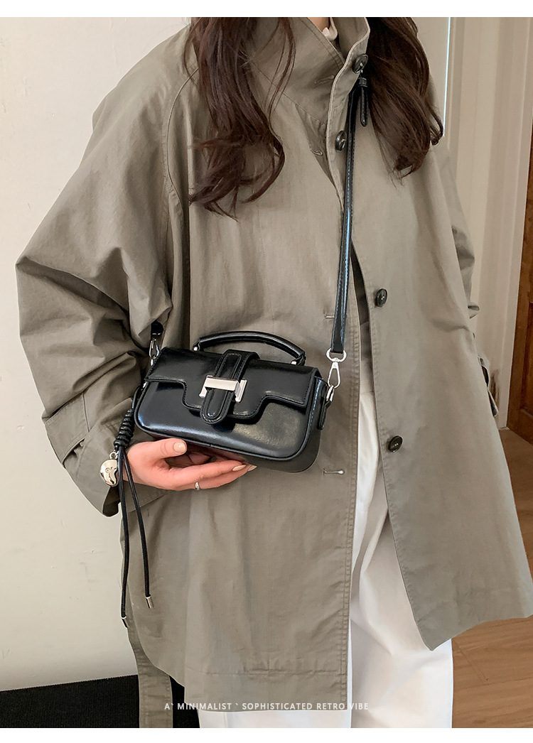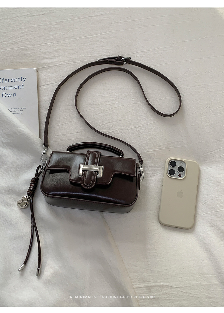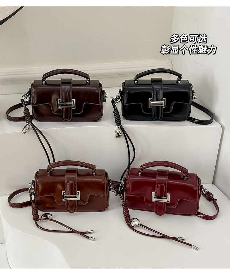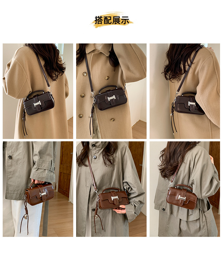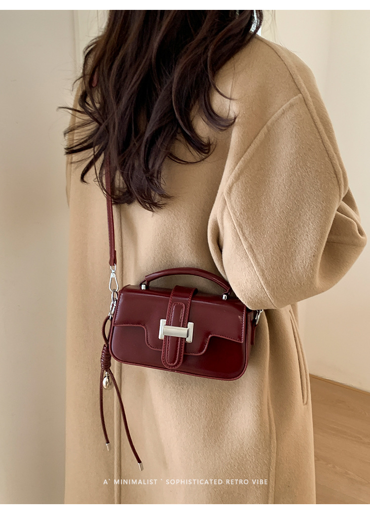 复古小众设计手提包轻奢高级感锁扣简约小方包百搭洋气单肩斜挎包